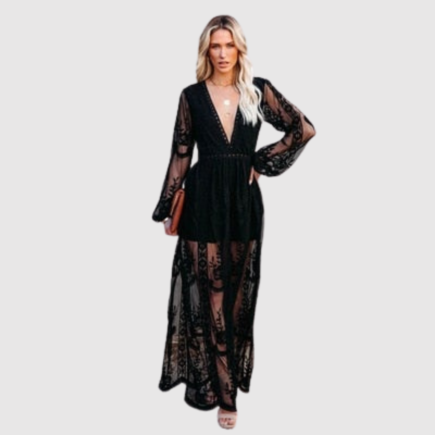 Eliška – Długie eleganckie sukienki z koronkową górą