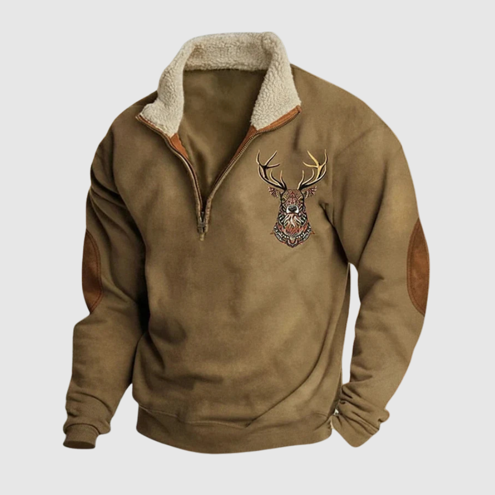 Daniel - Męska bluza z detalem jelenia i ciepłym fleecem