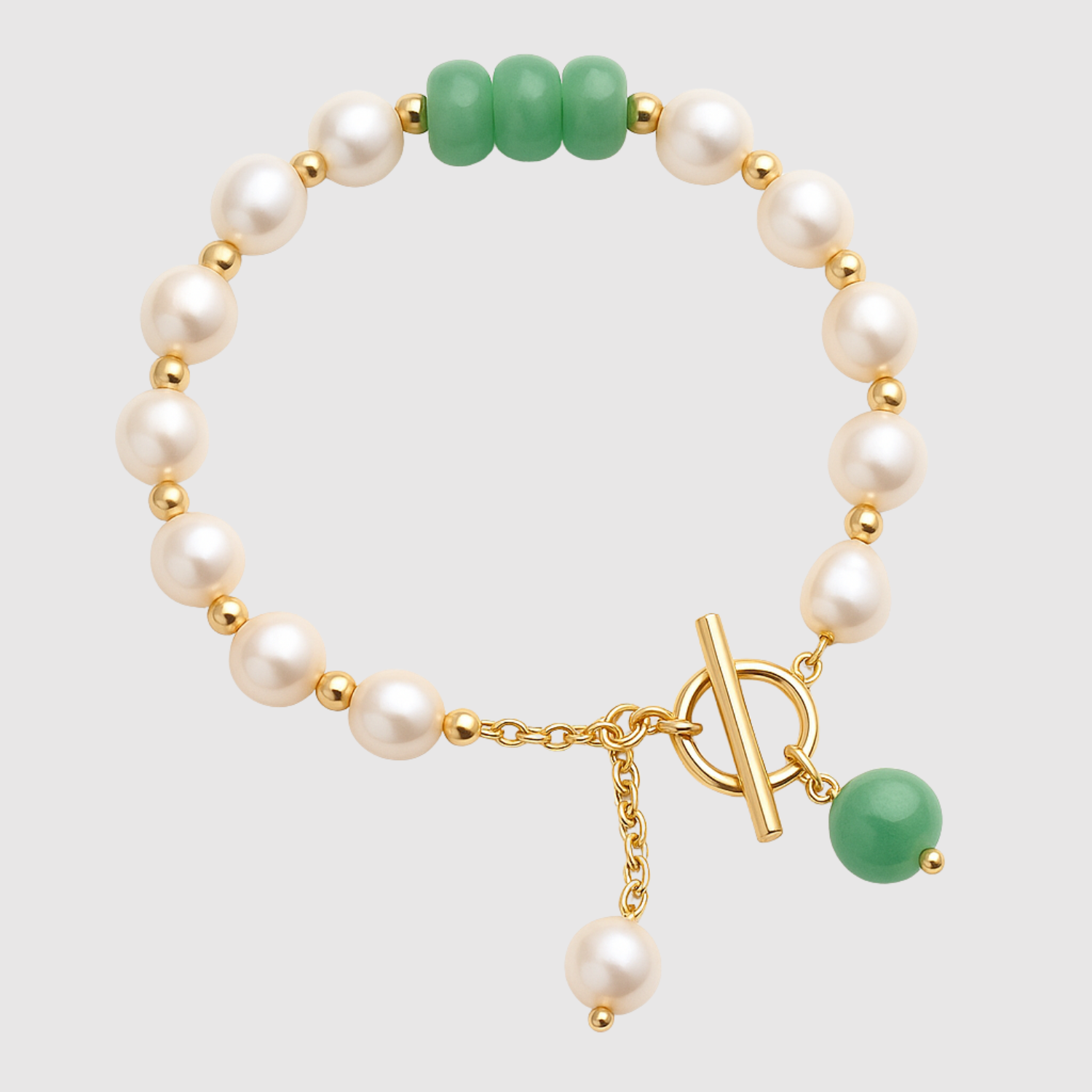 Liana – Perłowa bransoletka ze zielonym kamieniem