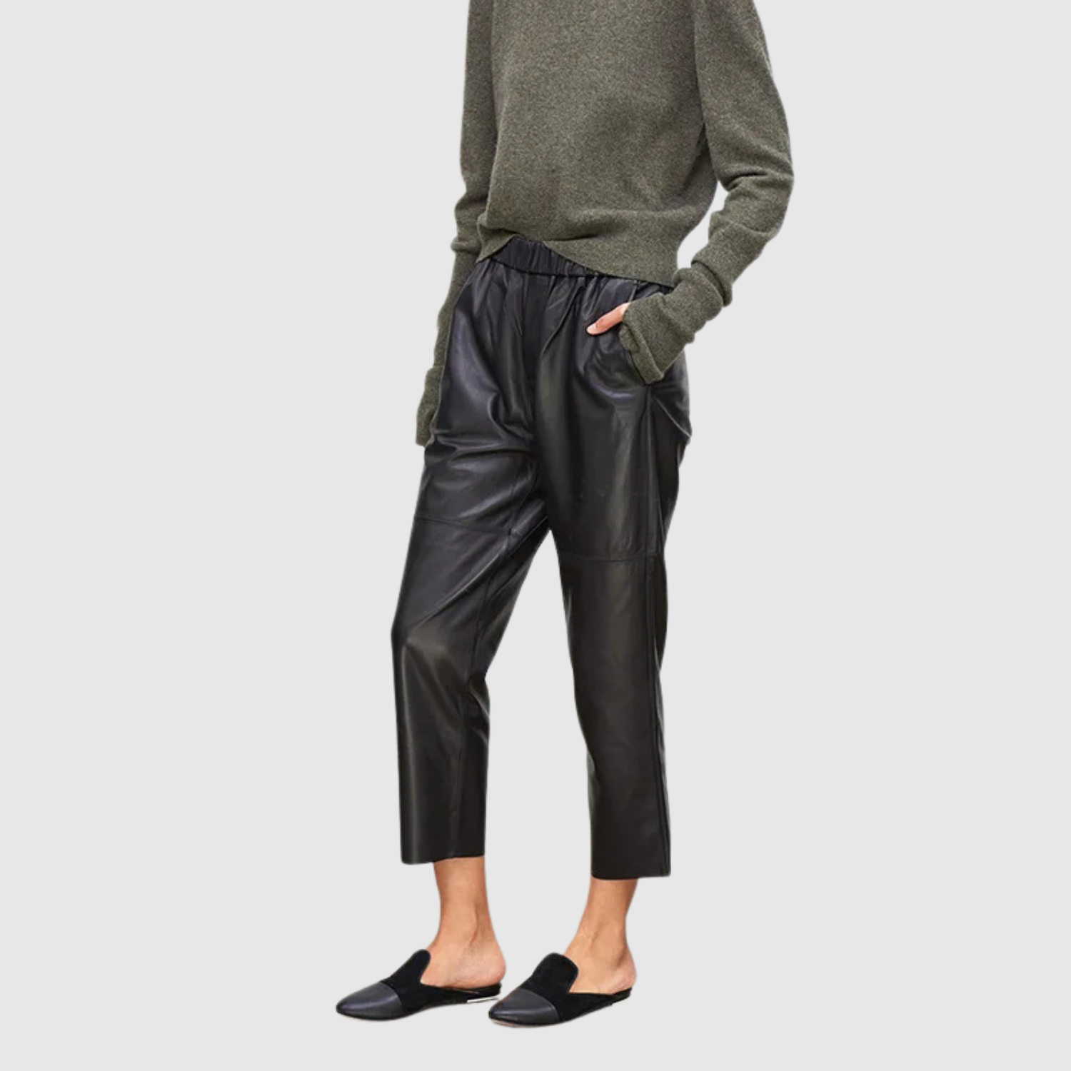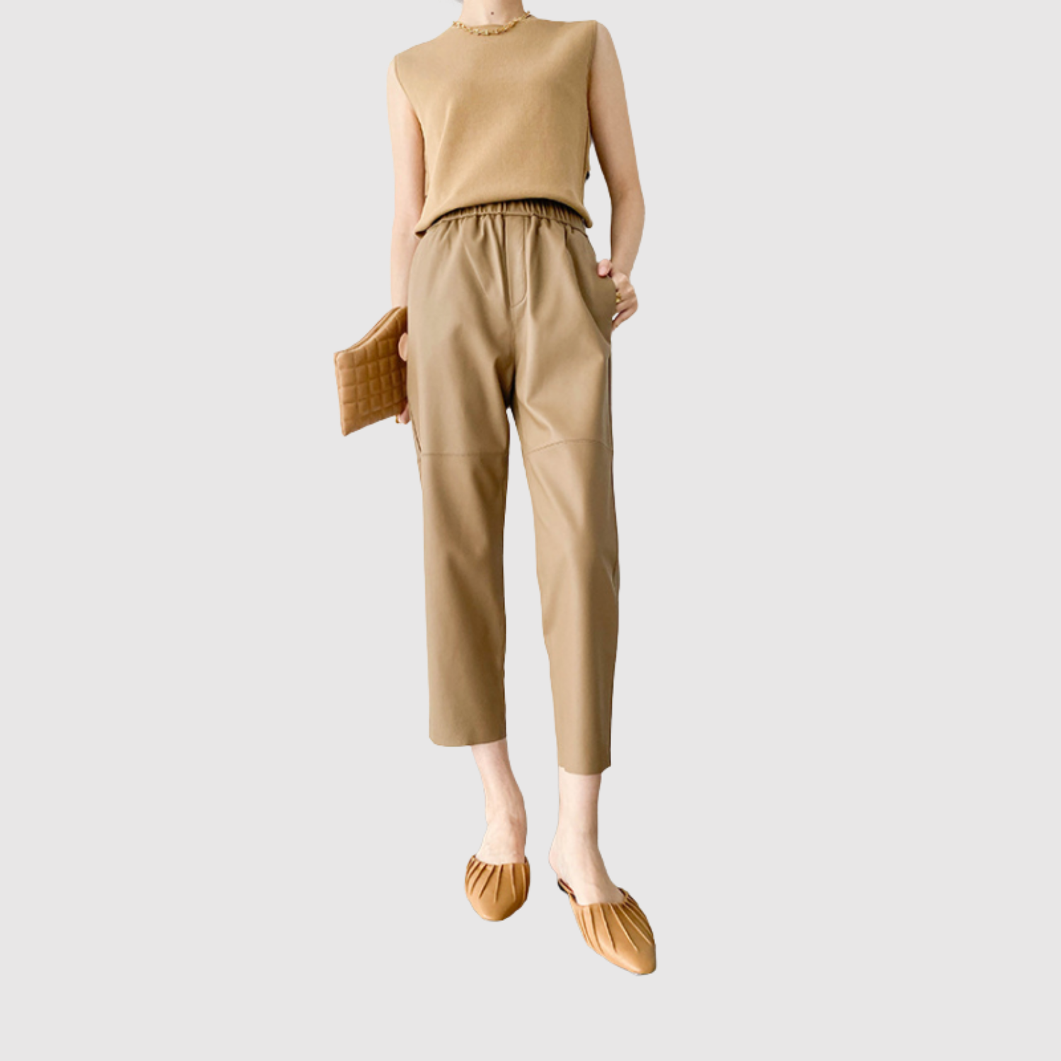 Mira – Spodnie z materiału skórzanego z elastycznym pasem