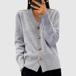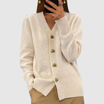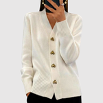 Ten kardigan łączy klasyczny design z nowoczesnym akcentem. Złote guziki nadają wyrafinowany wygląd, podczas gdy miękka dzianina zapewnia komfort zarówno na co dzień, jak i na bardziej formalne okazje. Łatwo go stylizować z dżinsami, spodniami lub spódnicami.