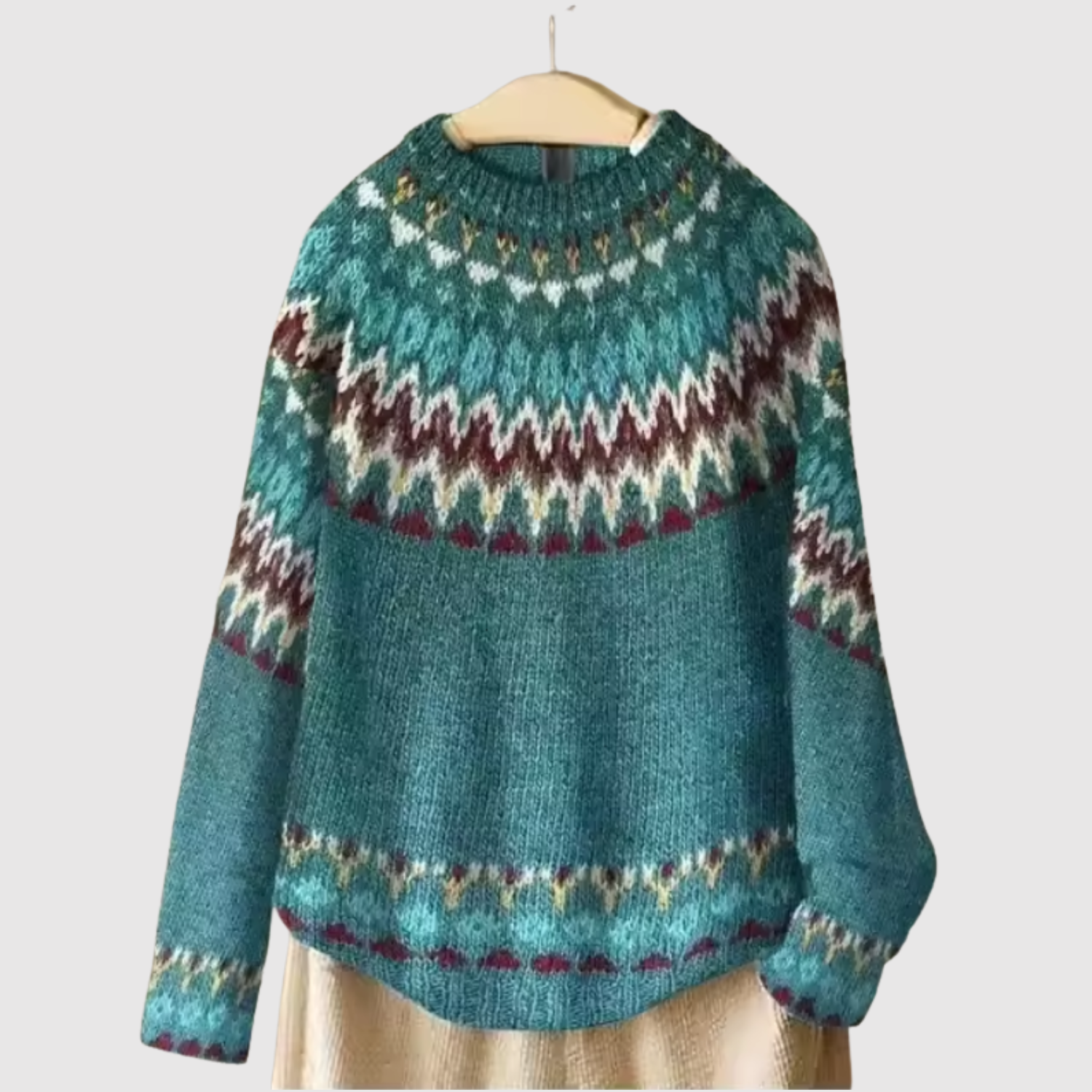 Ten sweter zachwyca swoim klasycznym nordyckim designem i miękką przędzą, która zapewnia wyjątkowy komfort w chłodne dni. Idealny na codzienny wygląd z dżinsami lub na przytulne chwile w domu, łączy ciepło i styl w jednym.