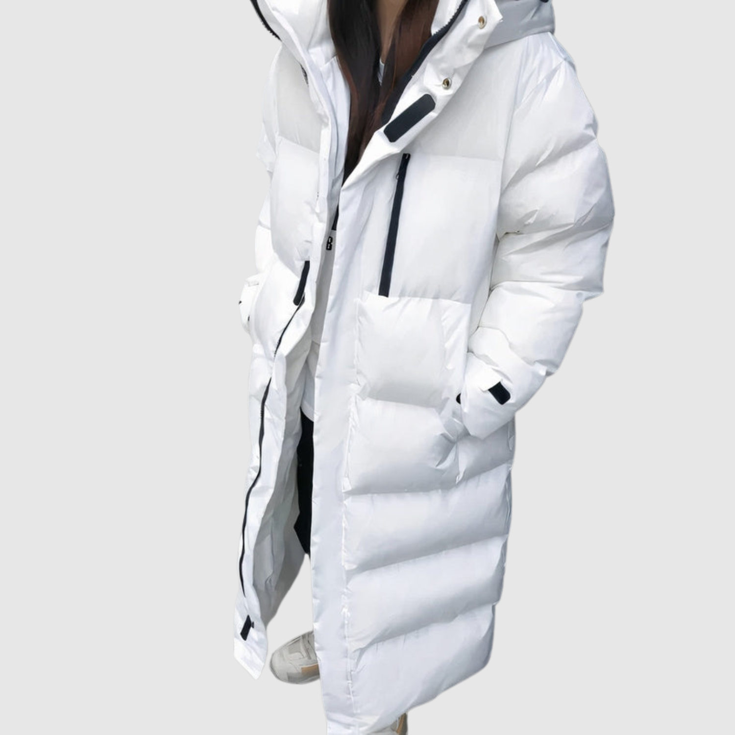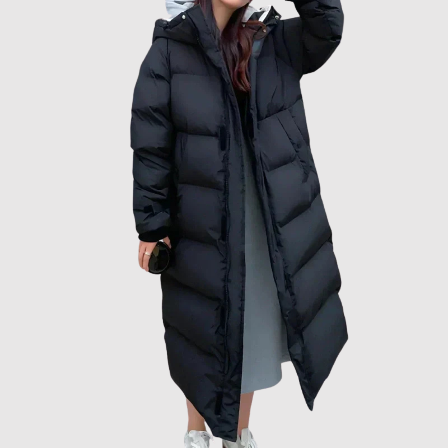 Utrzymuj ciepło i styl nawet w najzimniejsze dni dzięki temu długiemu ocieplanemu płaszczowi. Z grubą podszewką i ochronnym kapturem oferuje skuteczną izolację przed zimnem i wiatrem. Praktyczny zamek z przodu ułatwia zakładanie, a przestronne kieszenie zapewniają dodatkową funkcjonalność w codziennym życiu. Uniwersalny płaszcz, który łączy komfort i nowoczesny miejski styl na zimę.