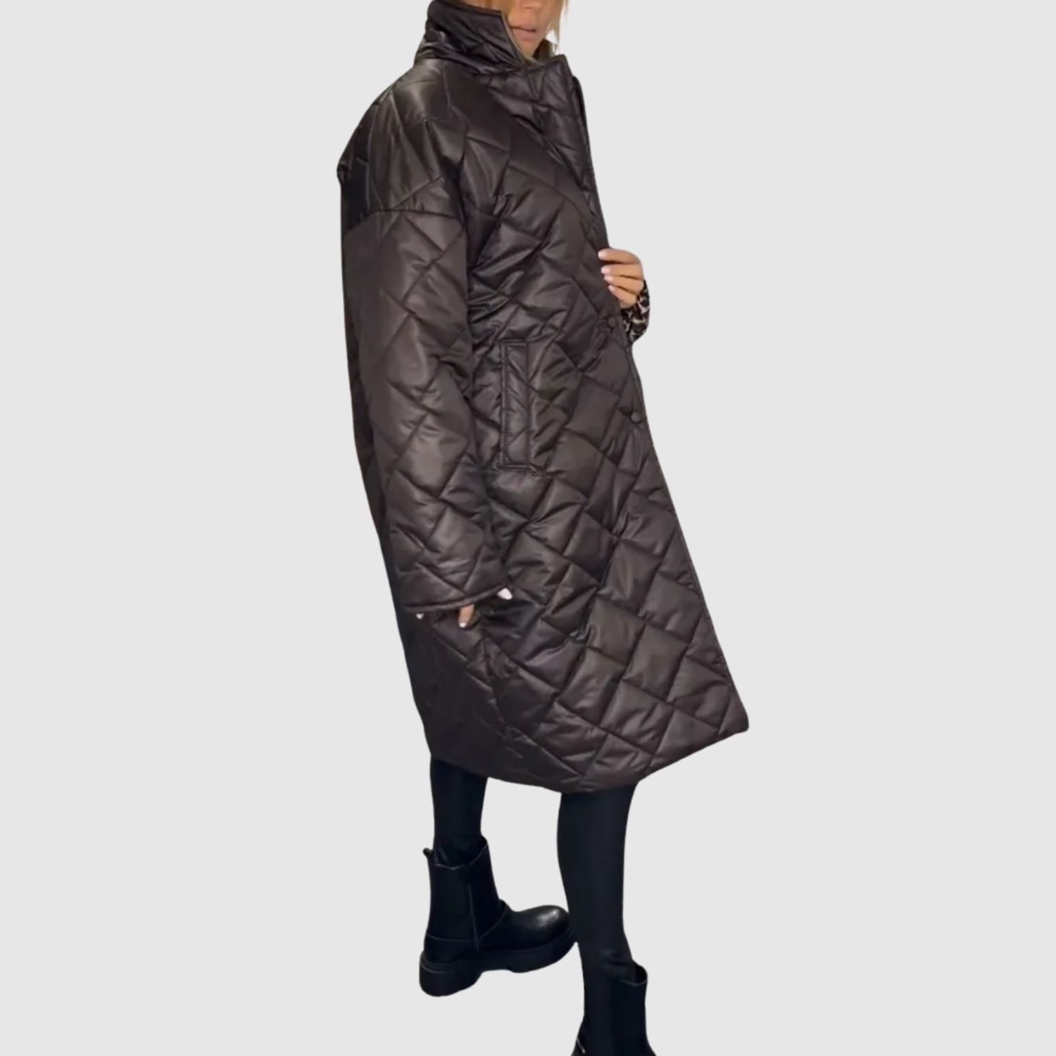 Ten dwustronny pikowany płaszcz oferuje dwa stylowe wyglądy w jednym. Idealny na chłodne dni, kiedy chcesz poczuć komfort i nowoczesny styl.