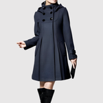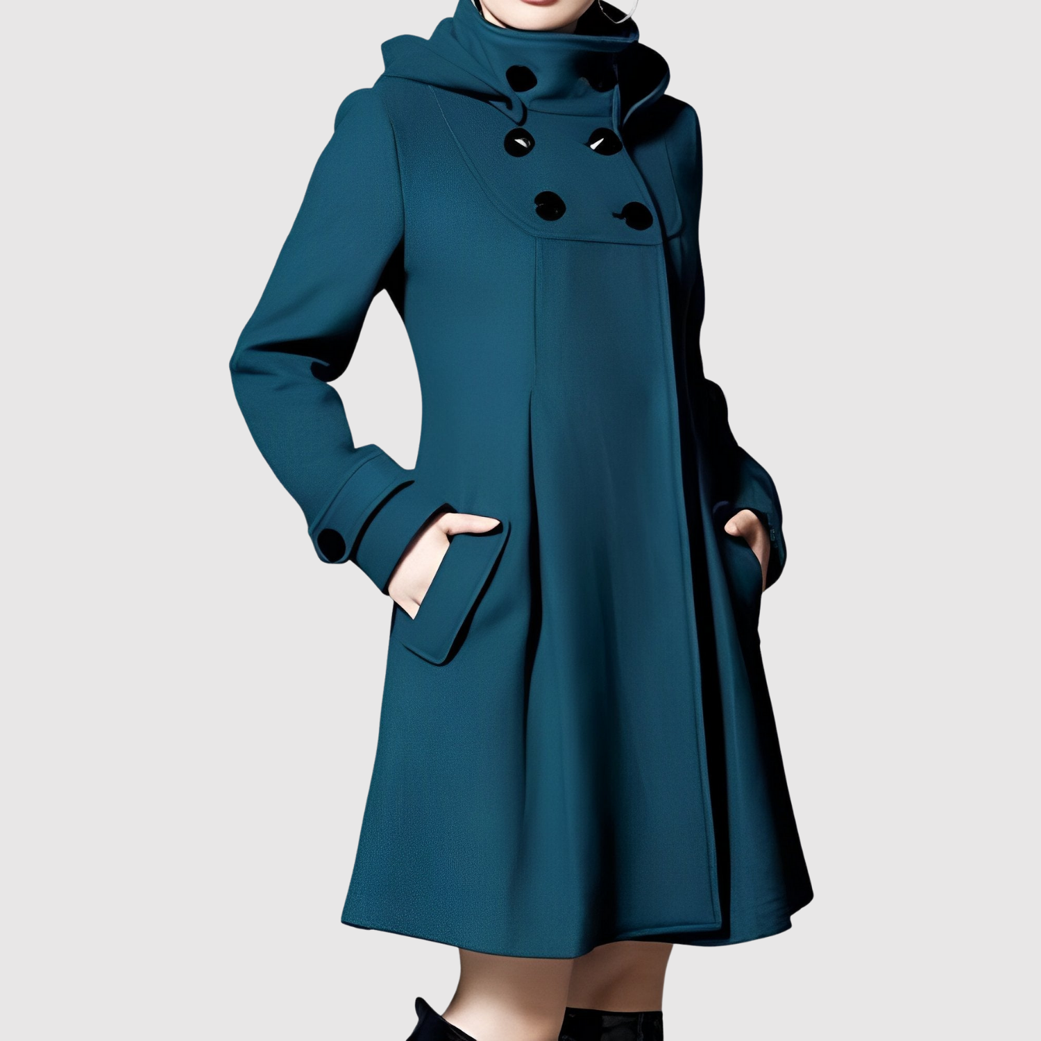 Ten płaszcz łączy retro inspirację z nowoczesnym komfortem. Elegancki krój w kształcie litery A zapewnia korzystną sylwetkę, podczas gdy podwójne guziki i boczne kieszenie dodają zarówno stylu, jak i funkcjonalności. Idealny na co dzień oraz na bardziej wyszukane okazje.