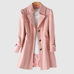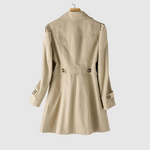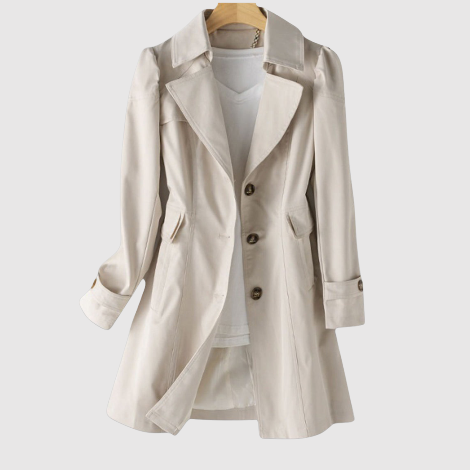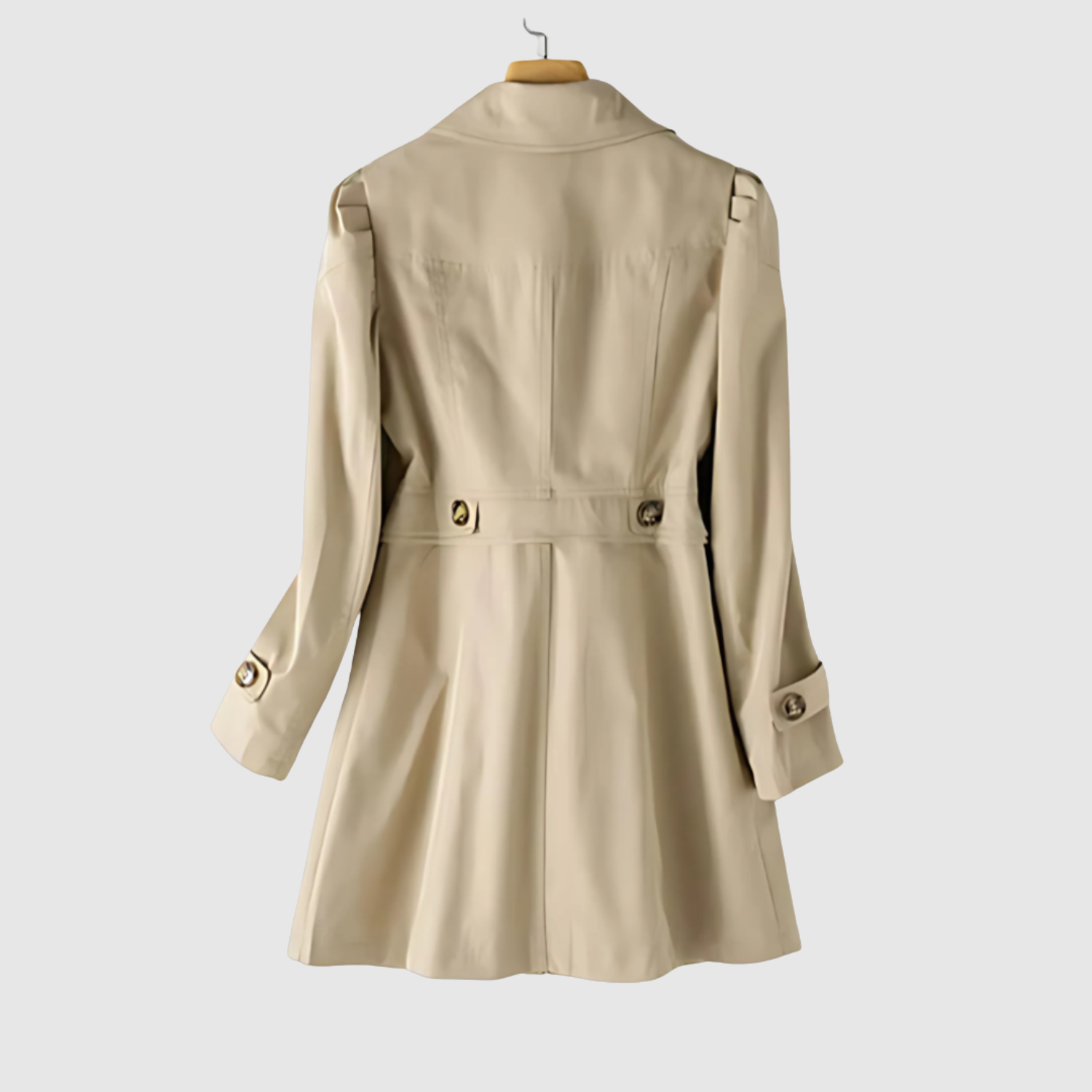 Ten trencz jest uosobieniem elegancji i funkcjonalności. Dzięki swojemu ponadczasowemu designowi, guzikowemu zapięciu i strukturalnemu krojowi jest idealny zarówno na codzienne noszenie, jak i na bardziej formalne okazje. Lekki i wygodny w noszeniu, jednocześnie nadaje wyrafinowany wygląd.