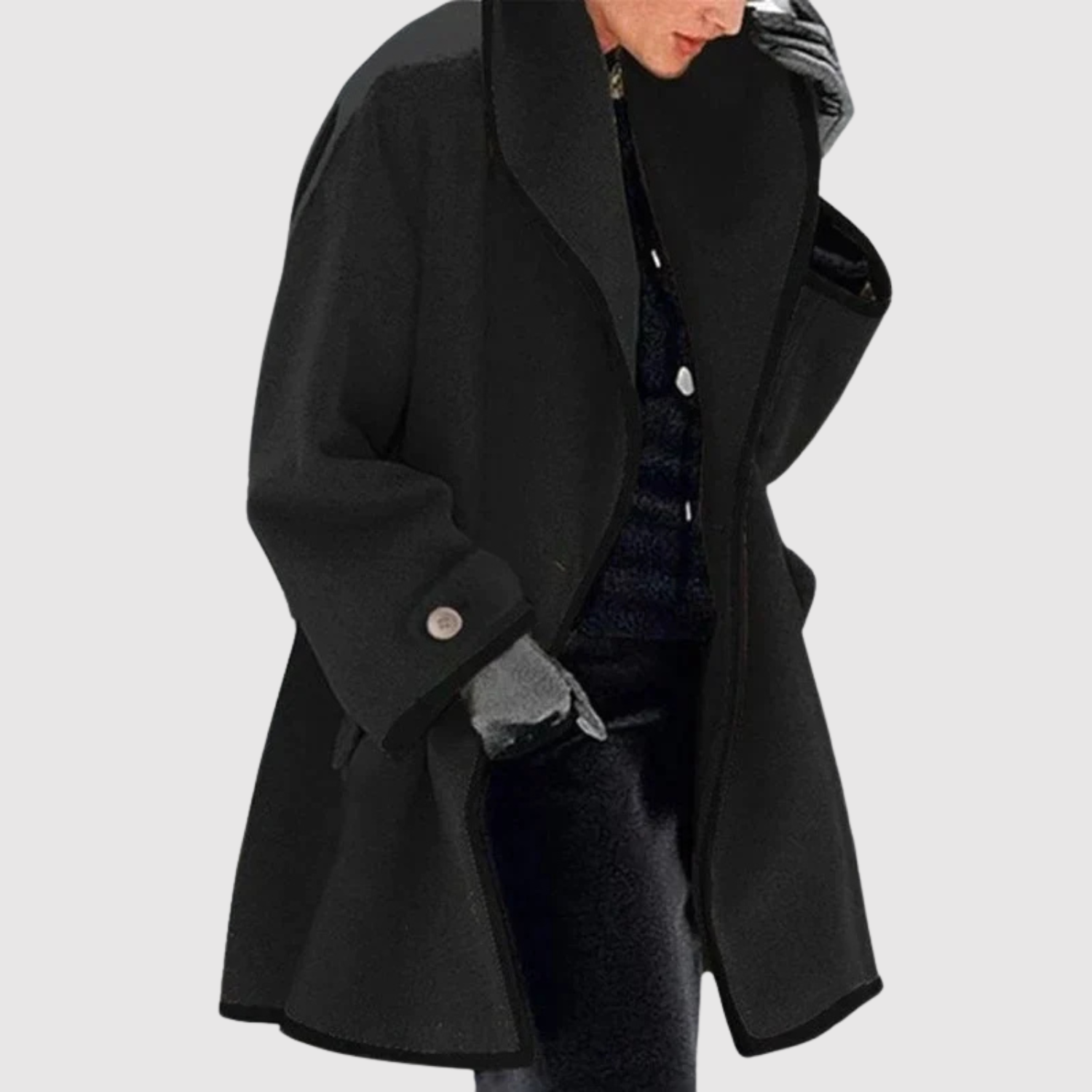 Jelena - Oversize damski płaszcz z kontrastowymi brzegami