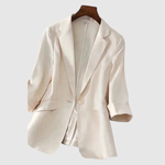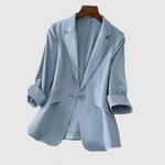 Ten blazer łączy klasyczne kroje z nowoczesnym, wygodnym wyglądem. Dzięki lekkim materiałom i luźnemu krojowi jest idealny zarówno do biura, jak i na czas wolny.