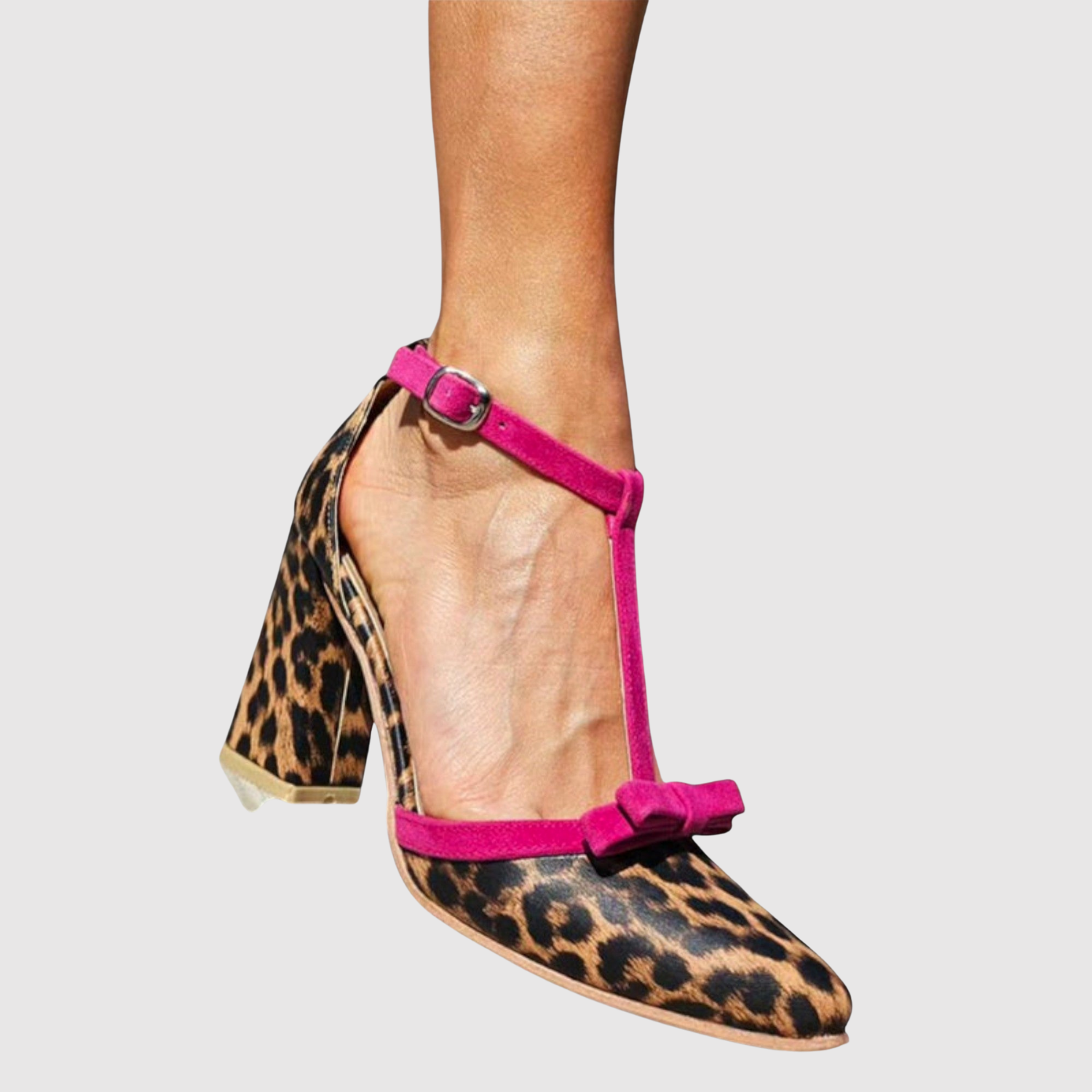 Te sandały łączą wyrazisty zwierzęcy nadruk z kobiecymi kontrastowymi detalami w różowym kolorze. Stabilny blokowy obcas zapewnia komfort i stabilność, podczas gdy regulowany pasek gwarantuje idealne dopasowanie. Urokliwy wybór na każdy wieczór lub specjalną okazję.