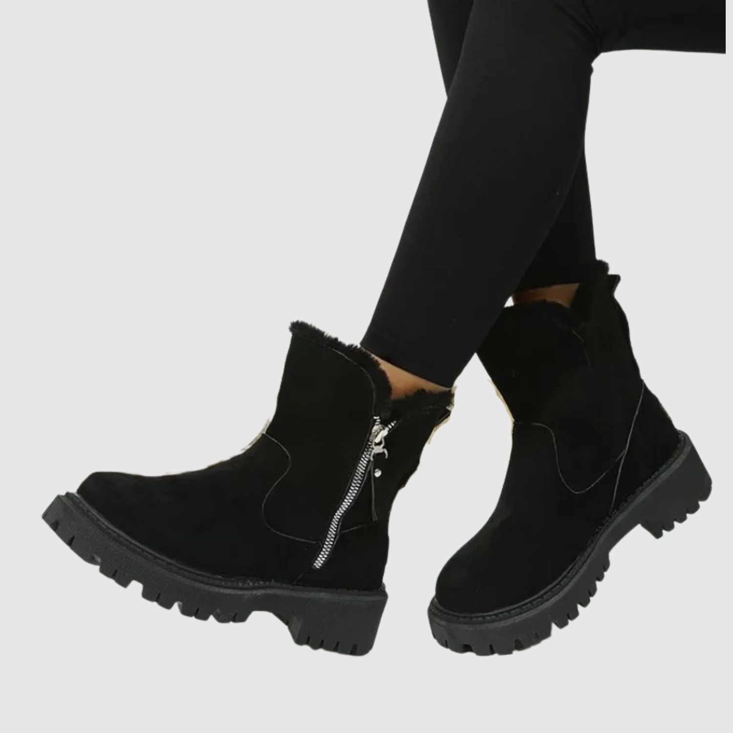 Zimowe buty Sofie zostały zaprojektowane, aby utrzymać twoje stopy ciepłe i stylowe przez całą zimę. Miękka puchowa podszewka oferuje luksusowe poczucie komfortu, podczas gdy solidna antypoślizgowa podeszwa zapewnia stabilność na śliskich powierzchniach. Boczny zamek ułatwia zakładanie i zdejmowanie, a ich minimalistyczny design idealnie pasuje zarówno do dżinsów, jak i legginsów.