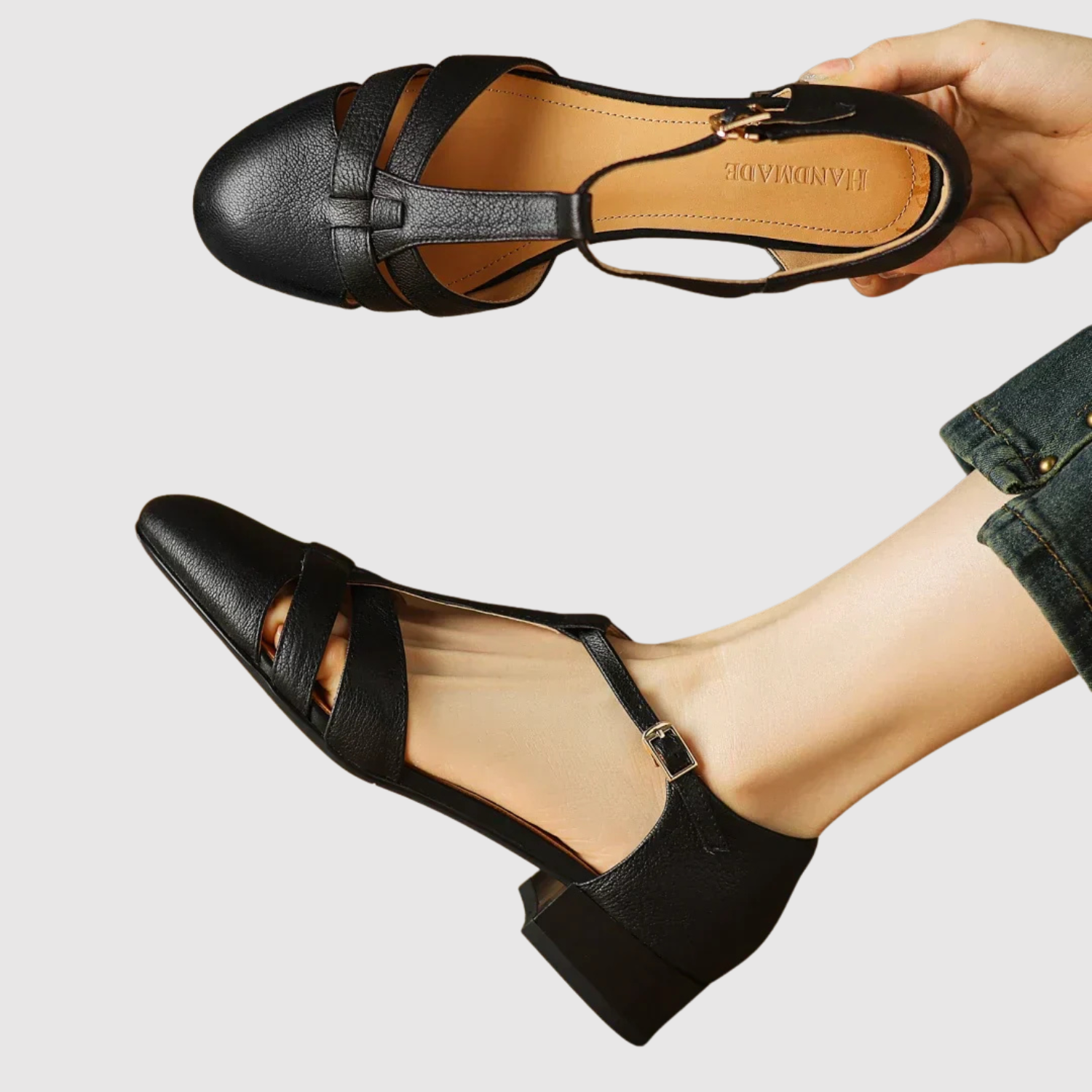 Greta – Eleganckie buty z paskiem T i niską podeszwą
