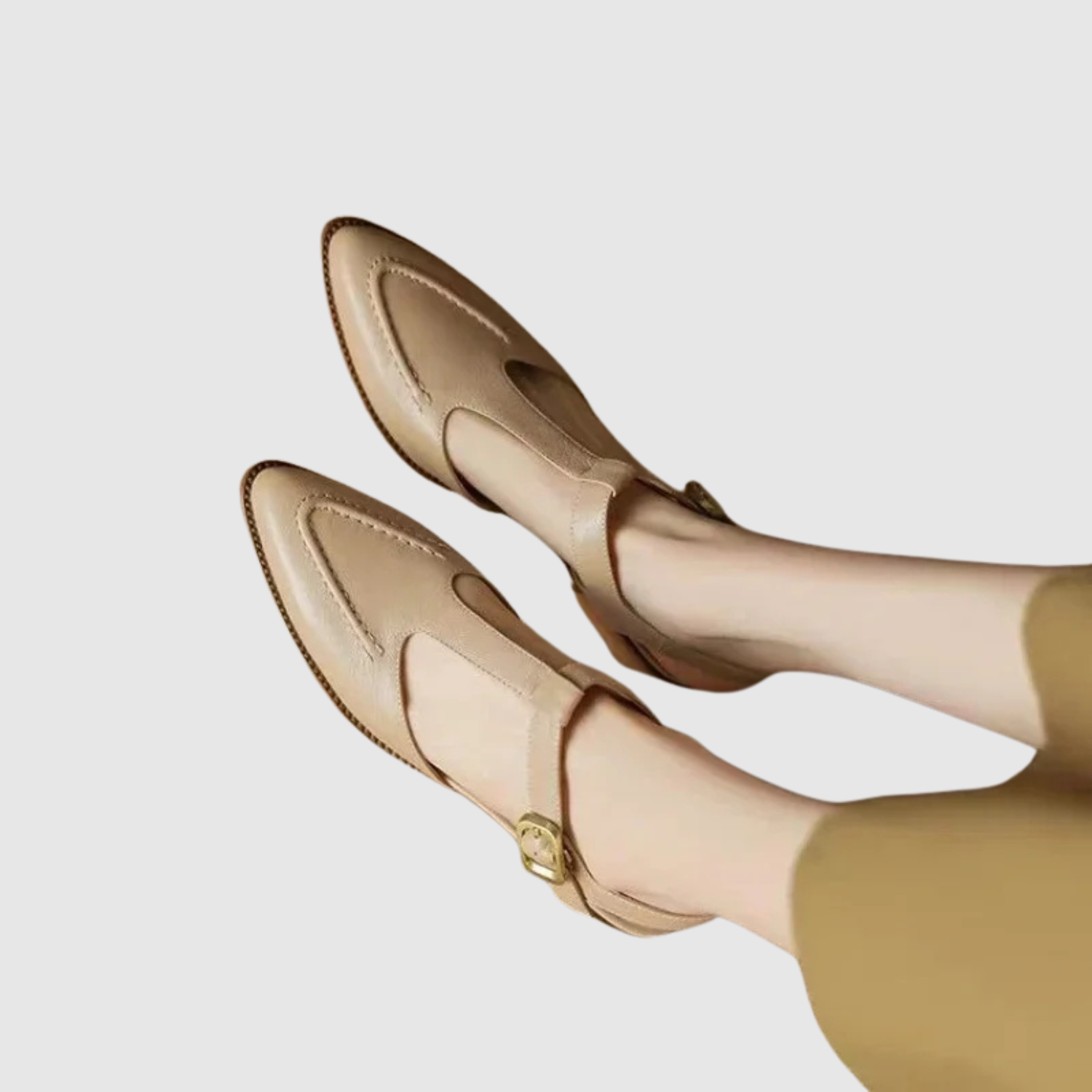 Te nowoczesne mokasyny wykonane są z miękkiej ekologicznej skóry i zachwycają czystym retro designem. Niska podeszwa i pasek z klamrą zapewniają wygodę i stabilność, podczas gdy ciepłe odcienie brązu i moreli dodają naturalnej elegancji. Idealne zarówno do codziennego noszenia, jak i na bardziej formalne okazje.