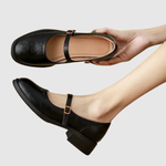 Te buty na niskim obcasie z paskiem wokół kostki oferują wyrafinowany retro styl, który nigdy nie wyjdzie z mody. Wykonane z wysokiej jakości eko skóry, są wygodne, stabilne i odpowiednie zarówno do biura, jak i na codzienne noszenie.