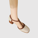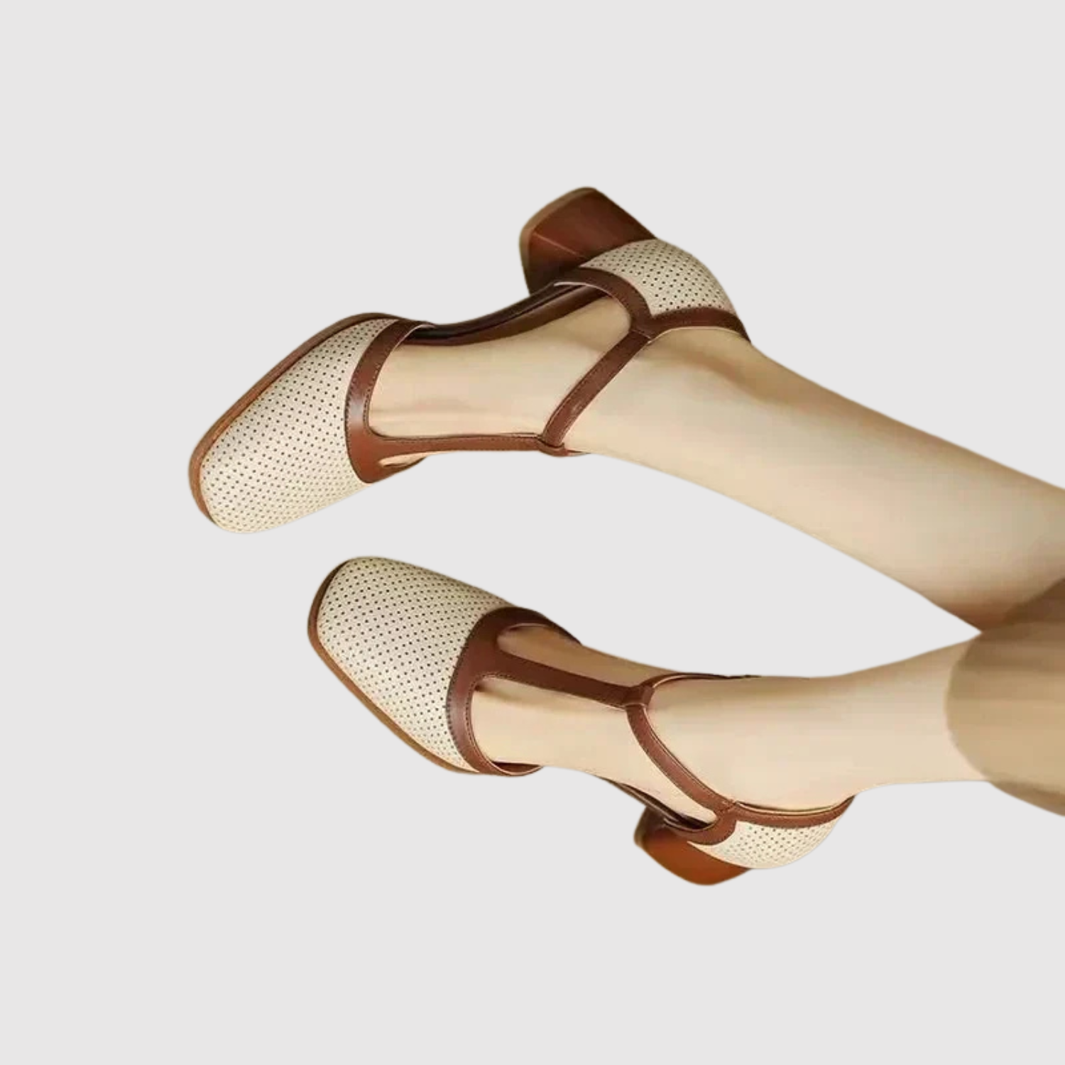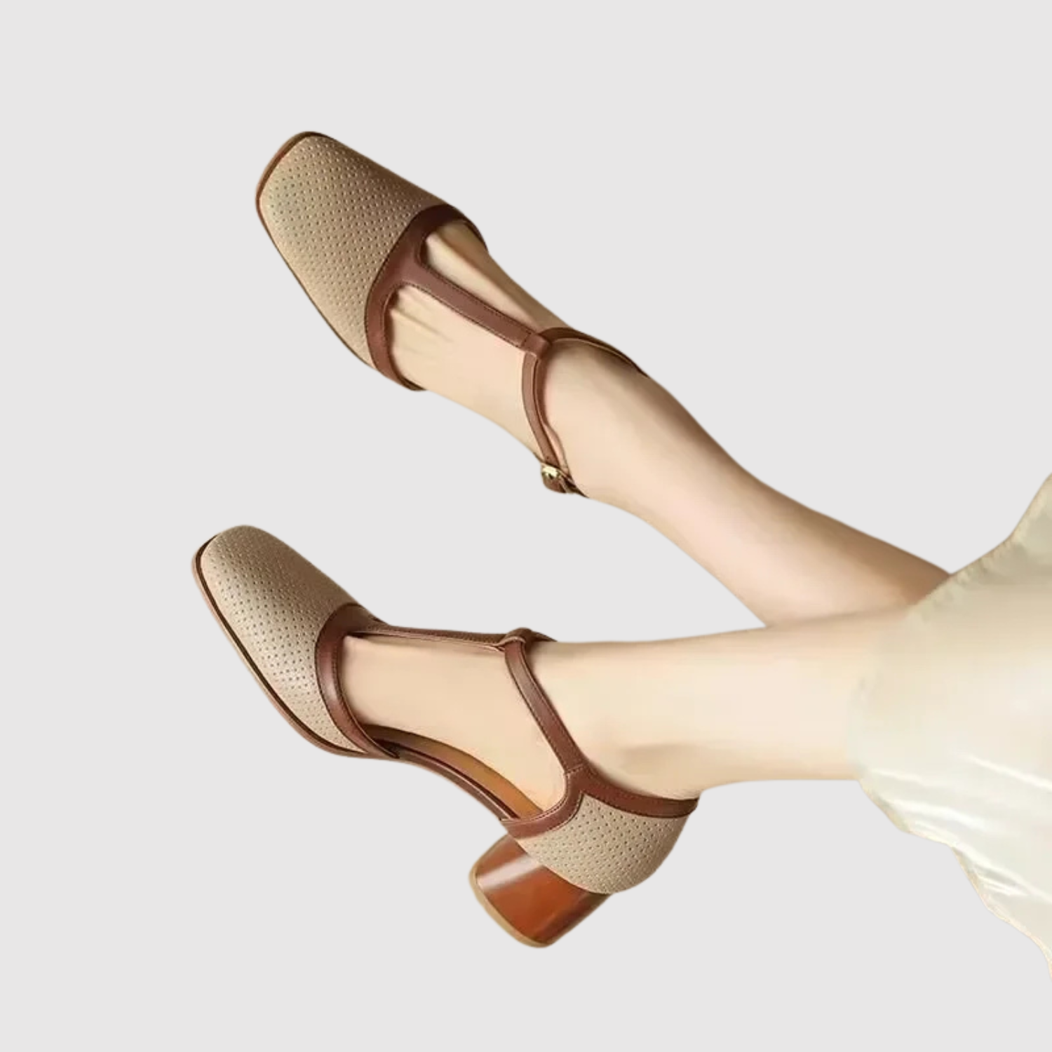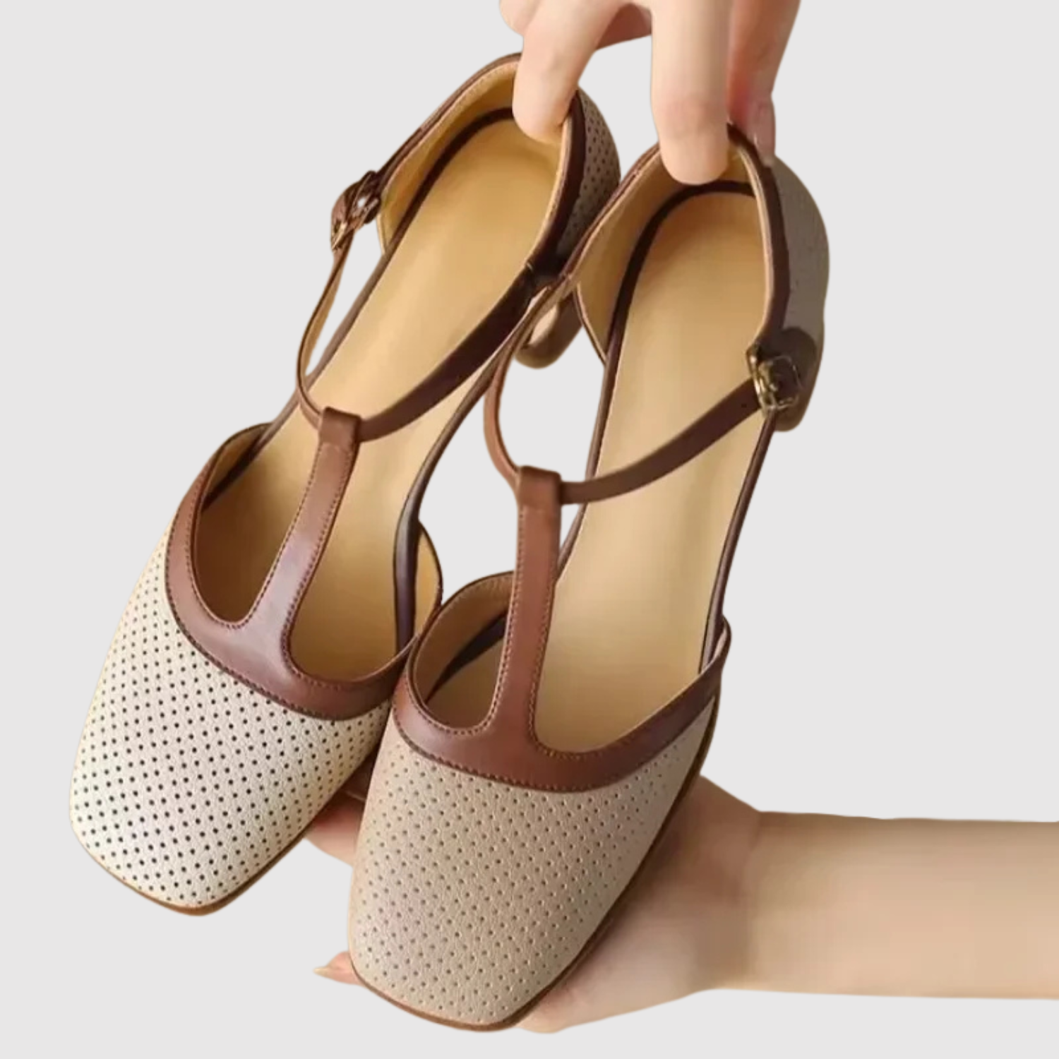 • Vintage design z delikatnym paskiem i niskim obcasem
