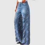 Kira – Dżinsy z kolorowym haftem i szeroką sylwetką