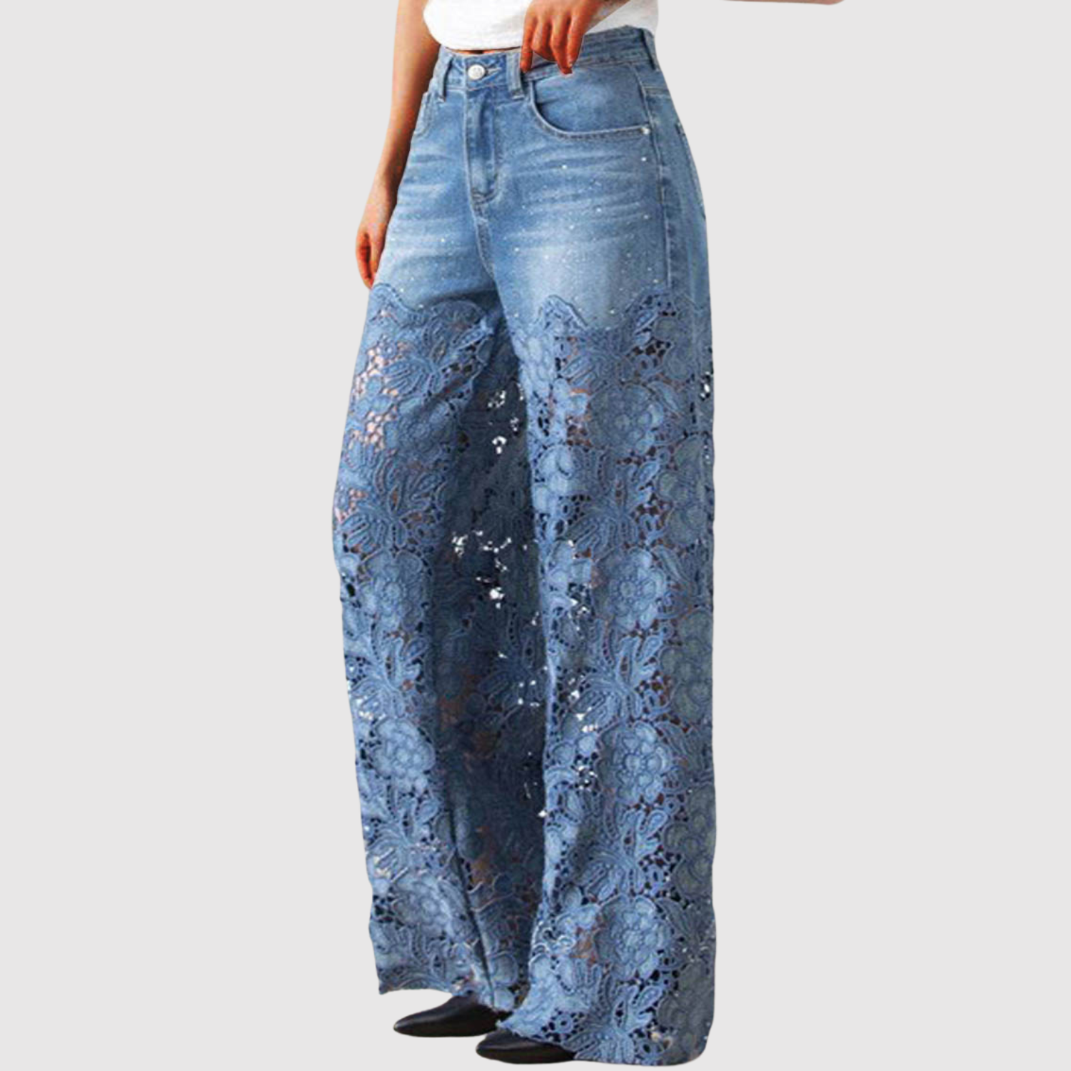 Te dżinsy łączą klasyczny denim z pięknymi kolorowymi haftami, które nadają kobiecy i artystyczny wygląd. Szeroka sylwetka zapewnia komfort i swobodę ruchów, idealne zarówno na co dzień, jak i na specjalne okazje.