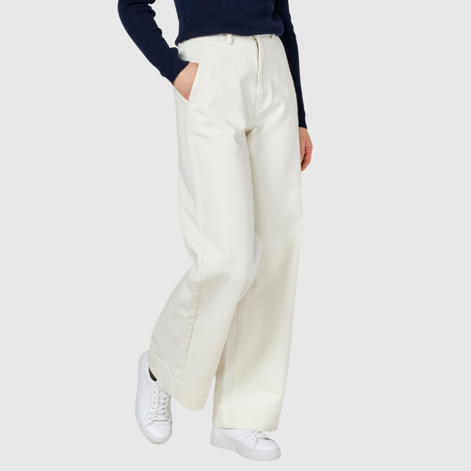 Te kremowe dżinsy łączą elegancki, jasny wygląd z nowoczesnym krojem. Czysty odcień nadaje wyrafinowany wygląd, idealny zarówno na co dzień, jak i do bardziej eleganckich stylizacji. Wygoda, styl i skandynawska prostota w jednym.