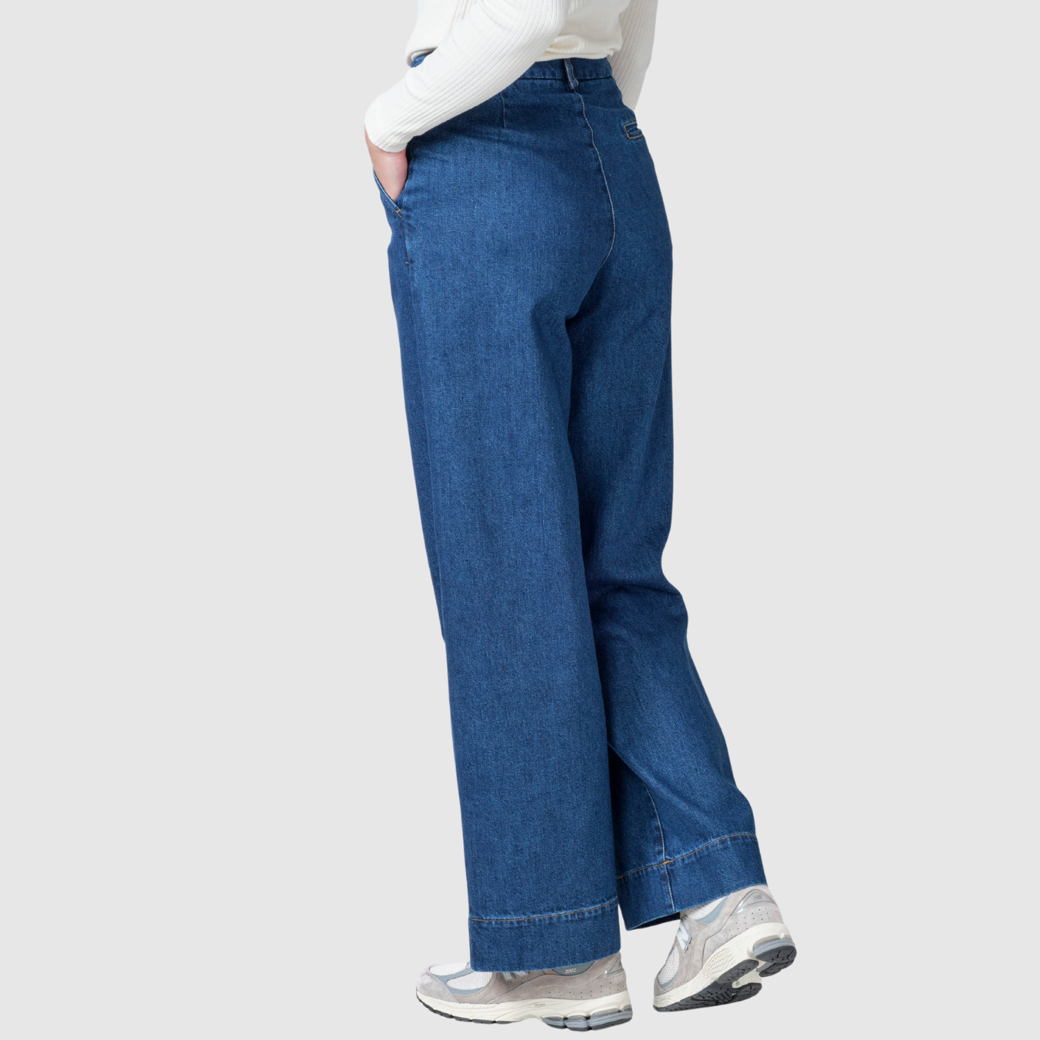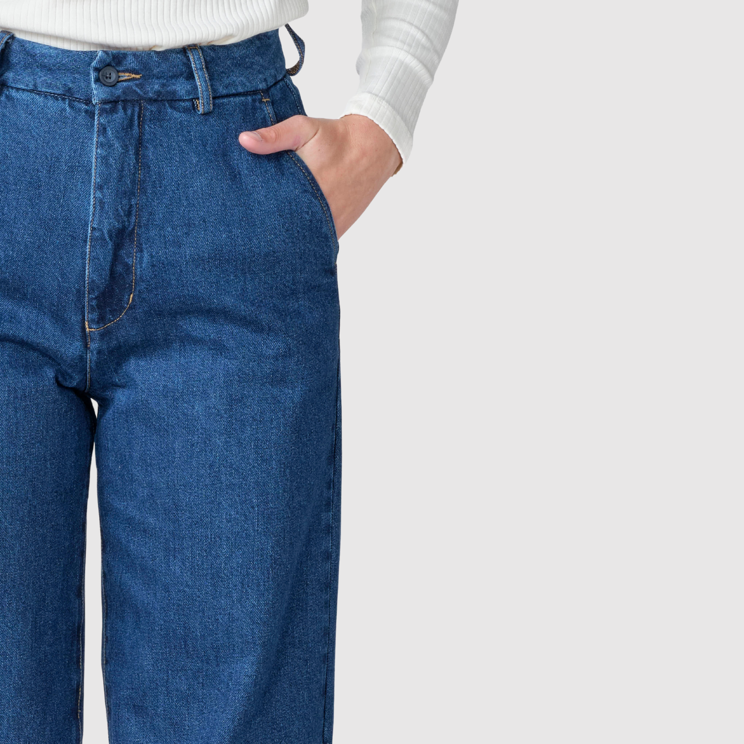 Te dżinsy z wysokim stanem w ciemnym praniu łączą elegancki wygląd z wygodnym krojem. Głęboki niebieski odcień nadaje ponadczasowy wygląd, idealny na dzień i wieczór. Zaprojektowane z myślą o komforcie, bez kompromisów w stylu.