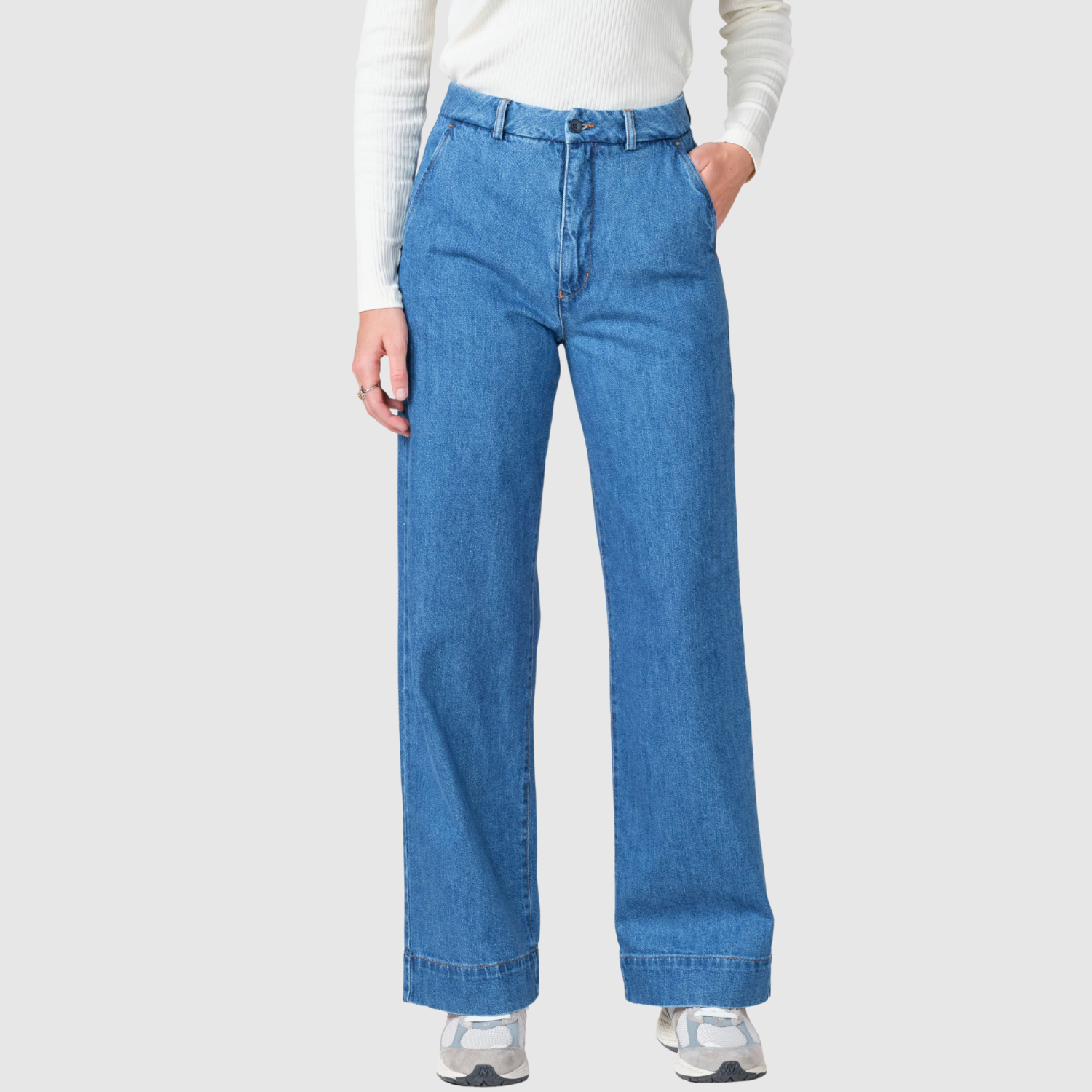 Te dżinsy z wysokim stanem oferują elegancki, wydłużony wygląd. Jasnoniebieski stonewash dodaje świeżego i nowoczesnego akcentu, podczas gdy szeroki krój zapewnia komfort przez cały dzień. Podstawowy element każdej garderoby.