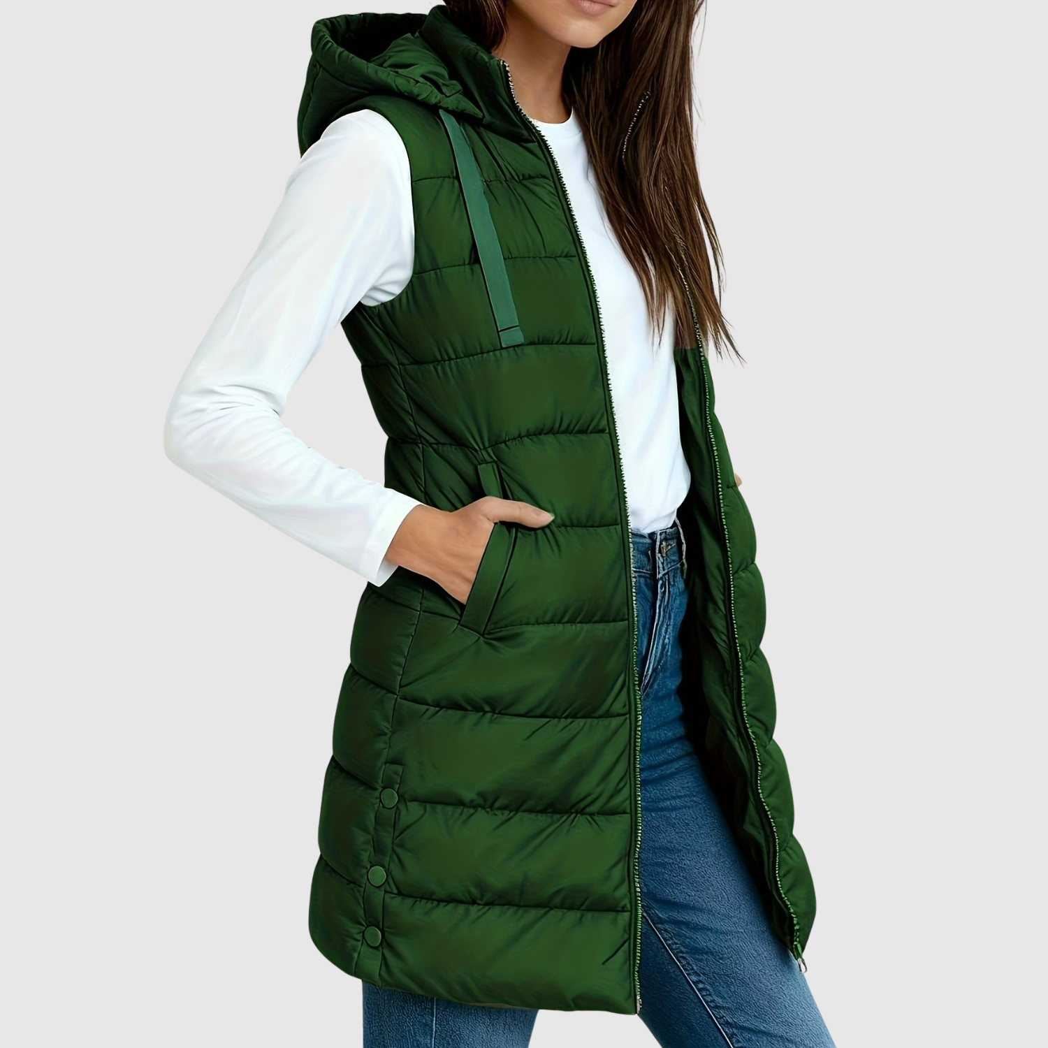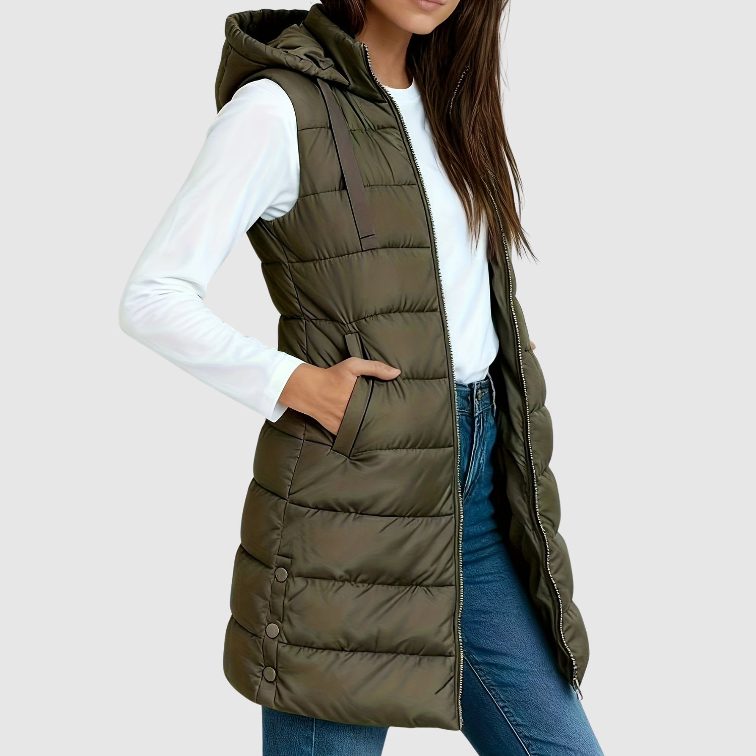 Przygotuj się na chłodne dni ze stylem. Ta kamizelka jest jednocześnie ciepła, lekka i nowoczesna – idealna do łączenia z swetrami, bluzkami lub codziennymi stylizacjami na jesień i zimę.