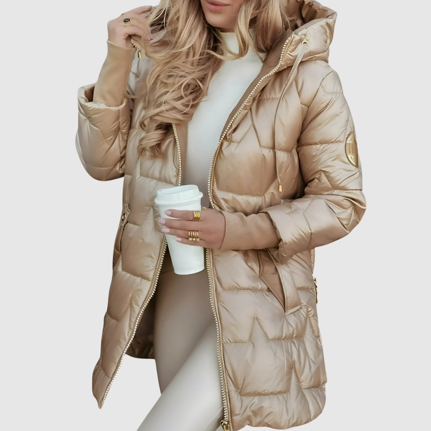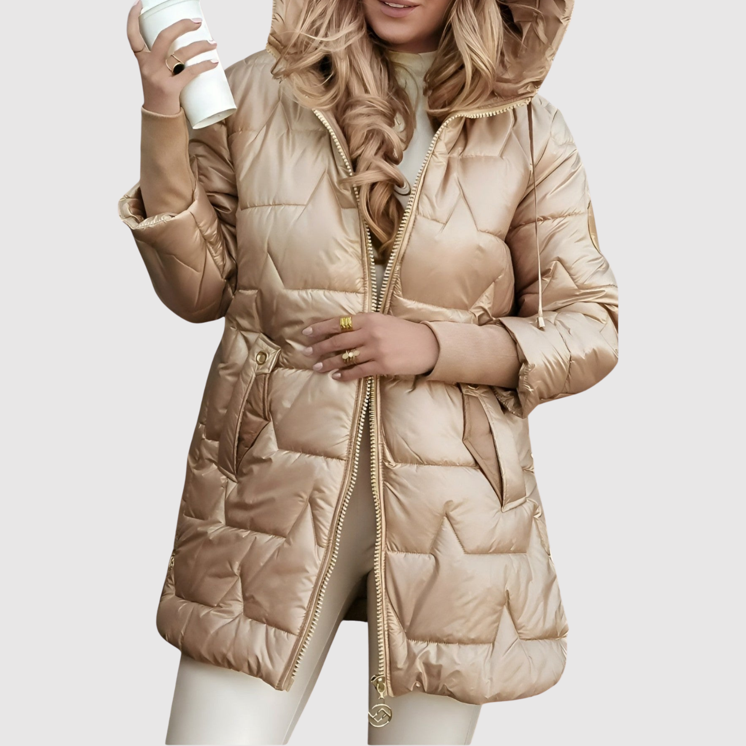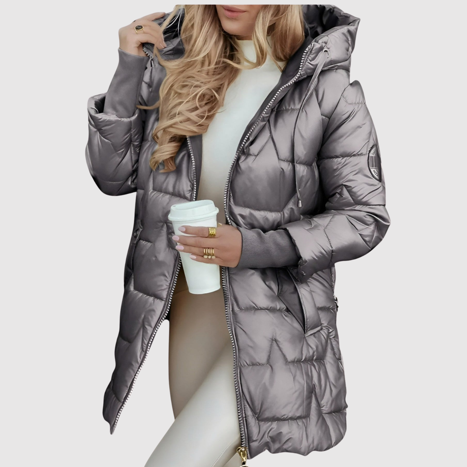 Ta długa dopasowana kurtka zapewnia maksymalną ochronę przed zimnym powietrzem. Dzięki swojej pikowanej konstrukcji, odpinanemu kapturowi z sztucznym futrem oraz regulowanej sylwetce, łączy funkcjonalność z elegancją w jednym. Niezbędny zimowy ulubieniec zarówno na co dzień, jak i na specjalne okazje.