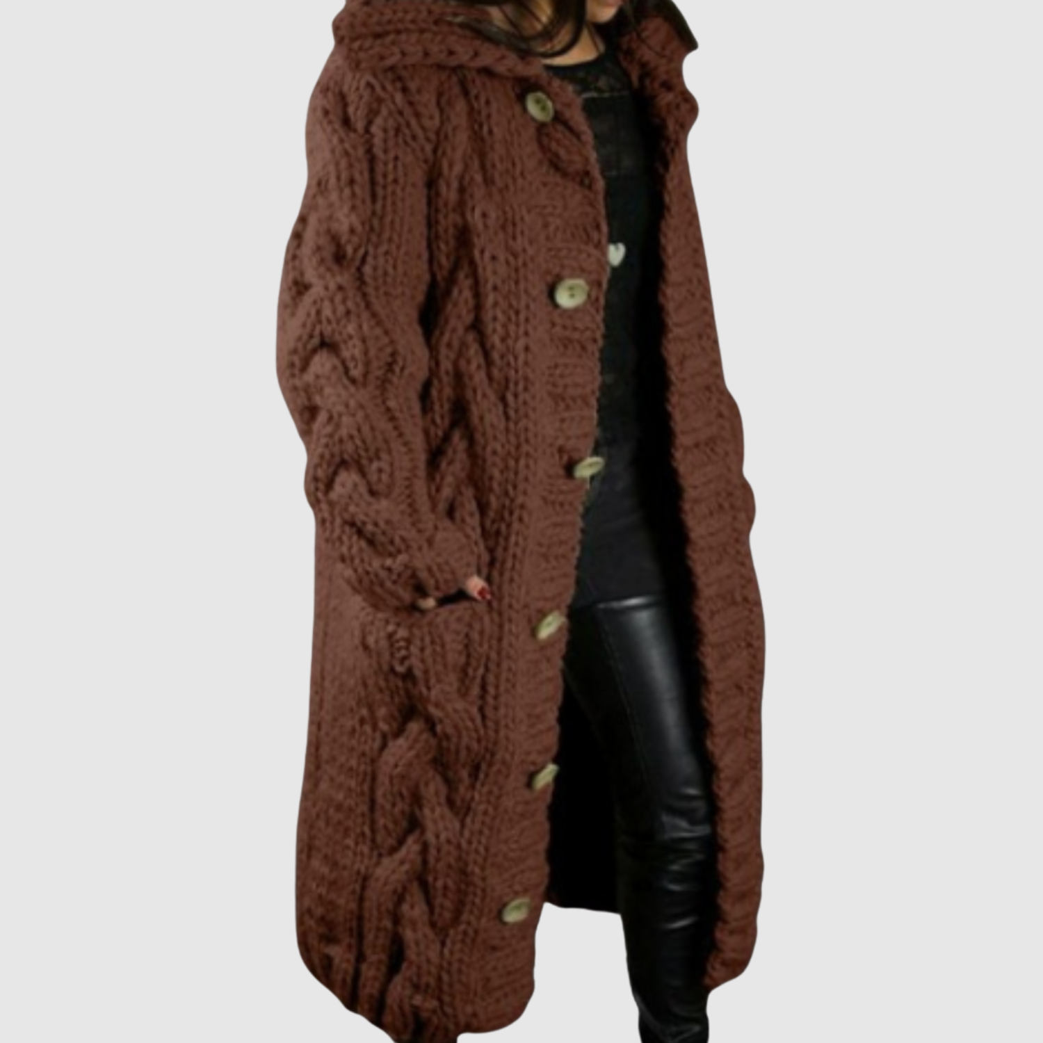 Jelena - Długi sweterkowy płaszcz z nowoczesnym reliefem