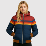 Ta kurtka łączy sportową inspirację z ciepłym, podszewkowym designem. Kolorowe paski nadają jej unikalny retro wygląd, podczas gdy miękka izolacja chroni przed zimnem. Idealny wybór na codzienne noszenie oraz na aktywności na świeżym powietrzu w okresie przejściowym i zimowym.