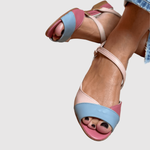 Te sandały łączą nowoczesny design z kobiecymi detalami. Miękkie paski w kontrastowych kolorach nadają im wyjątkowy wygląd, podczas gdy wygodna podeszwa sprawia, że są idealne zarówno do codziennego noszenia, jak i na wakacje.