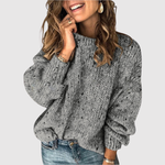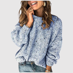 Ten objętościowy sweter oferuje luźny i nowoczesny wygląd, idealny na chłodne dni. Miękka i gruba dzianina zapewnia komfort przez cały dzień, a jego design ułatwia stylizację z dżinsami i spódnicami.