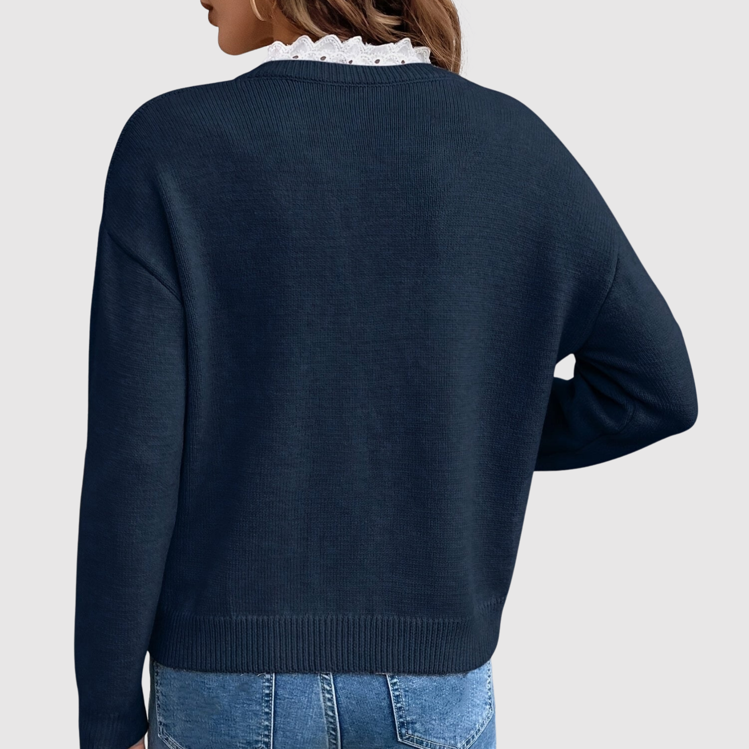 Nora - Sweter dziany z dekoltem w kształcie V i koronką