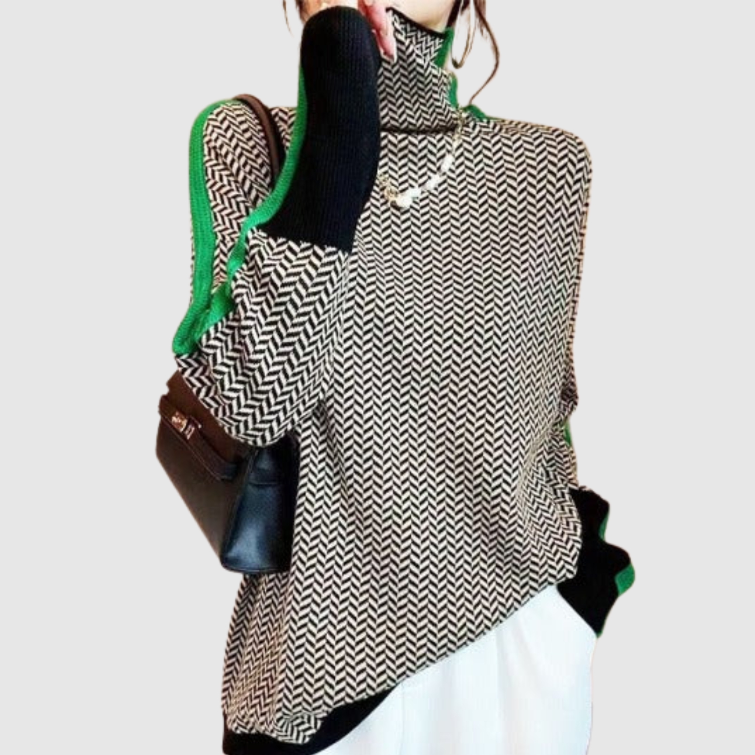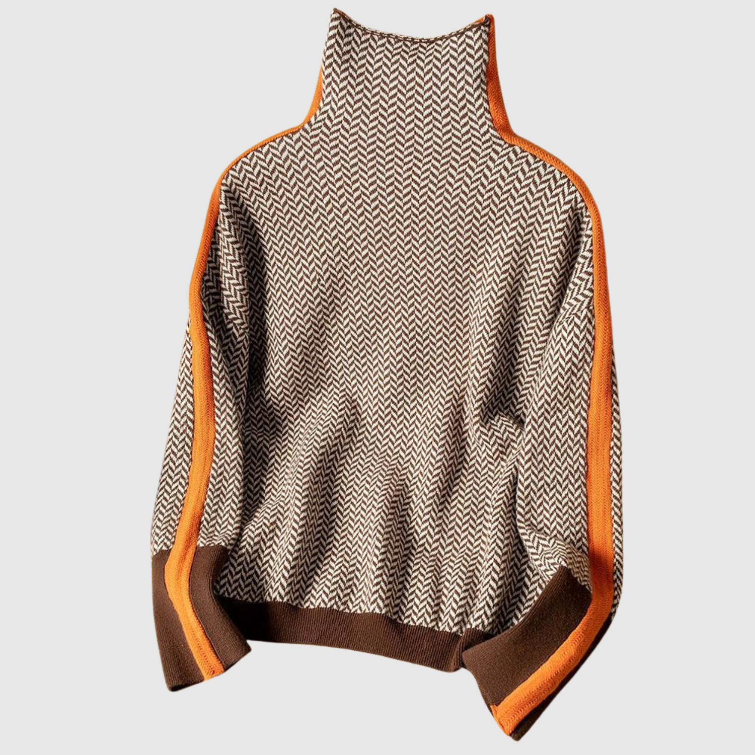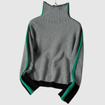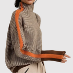 Ten sweter łączy czysty wygląd z nowoczesnymi kolorowymi detalami na rękawach.