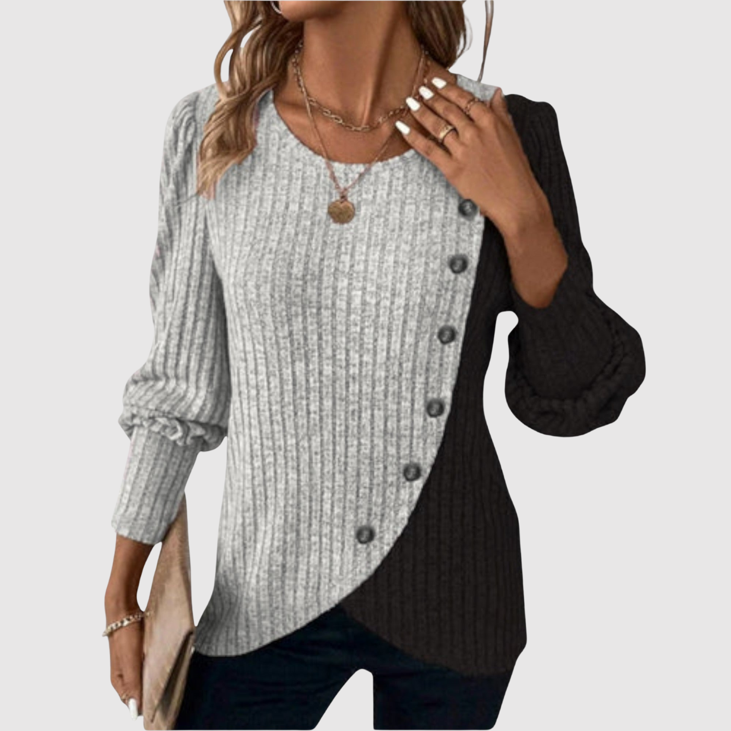 Nora – Sweter z asymetrycznym kwiatowym wzorem