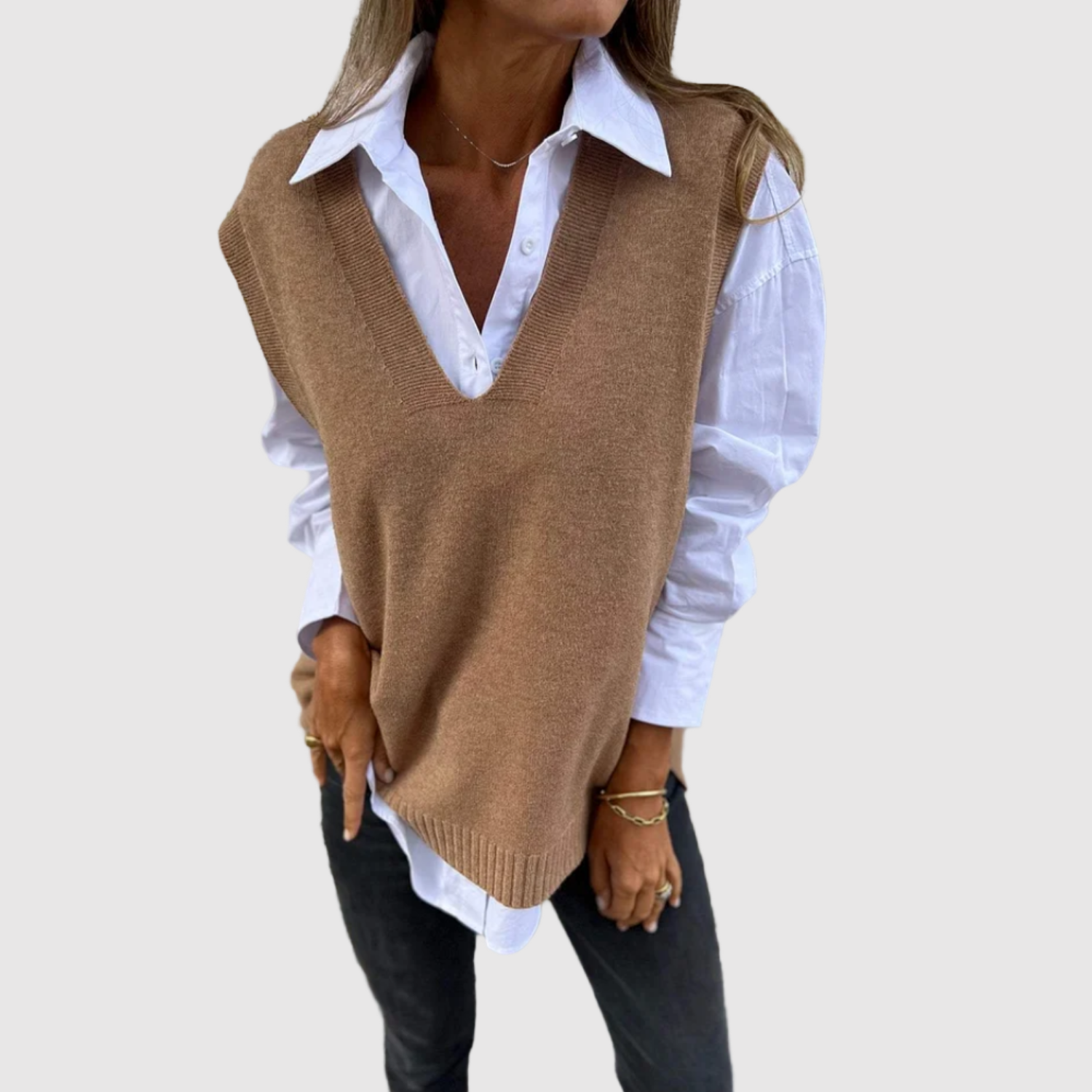 Nora – Pleciony sweter z dekoltem w kształcie V