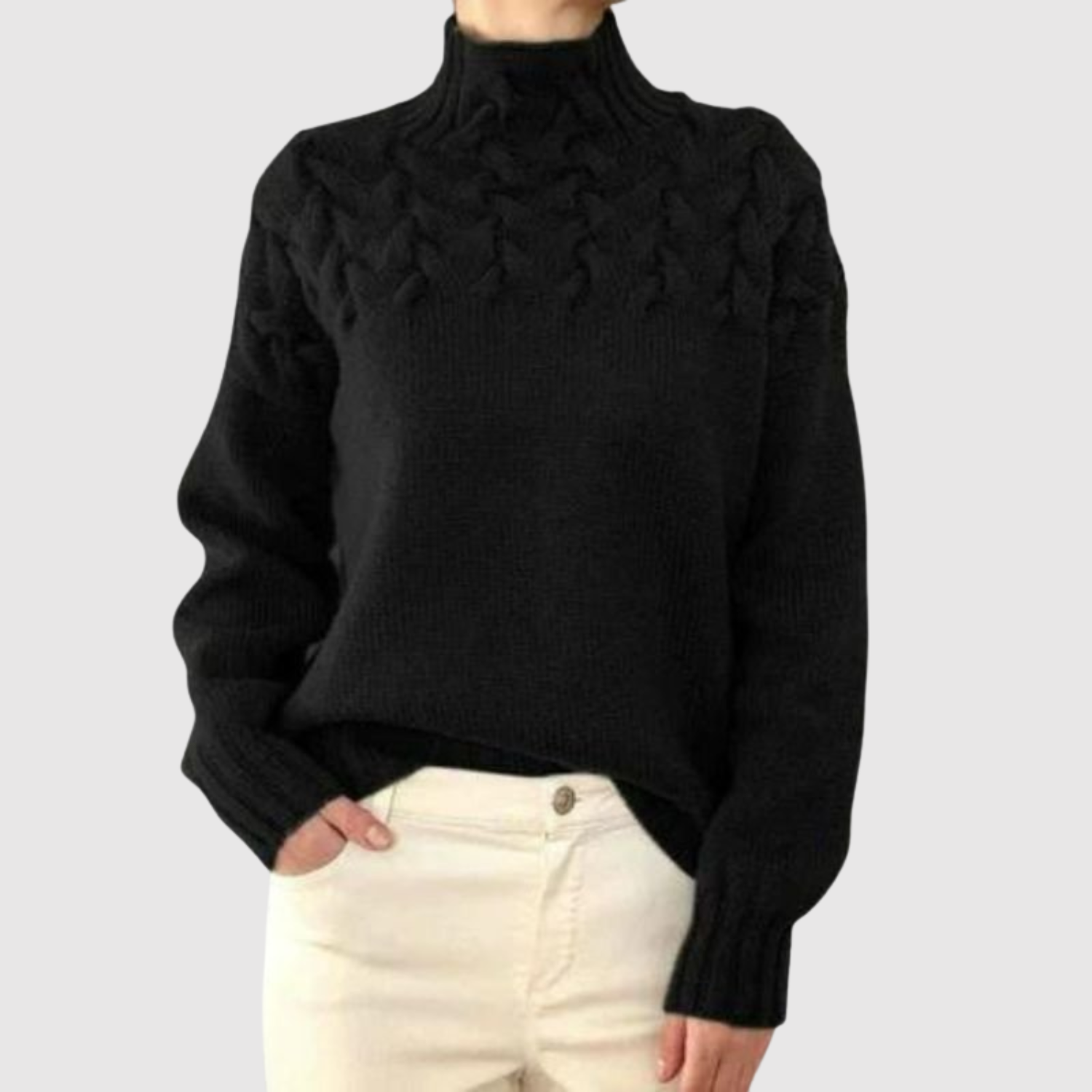 Nora – Sweter pleciony z wysokim kołnierzem i reliefowym wzorem