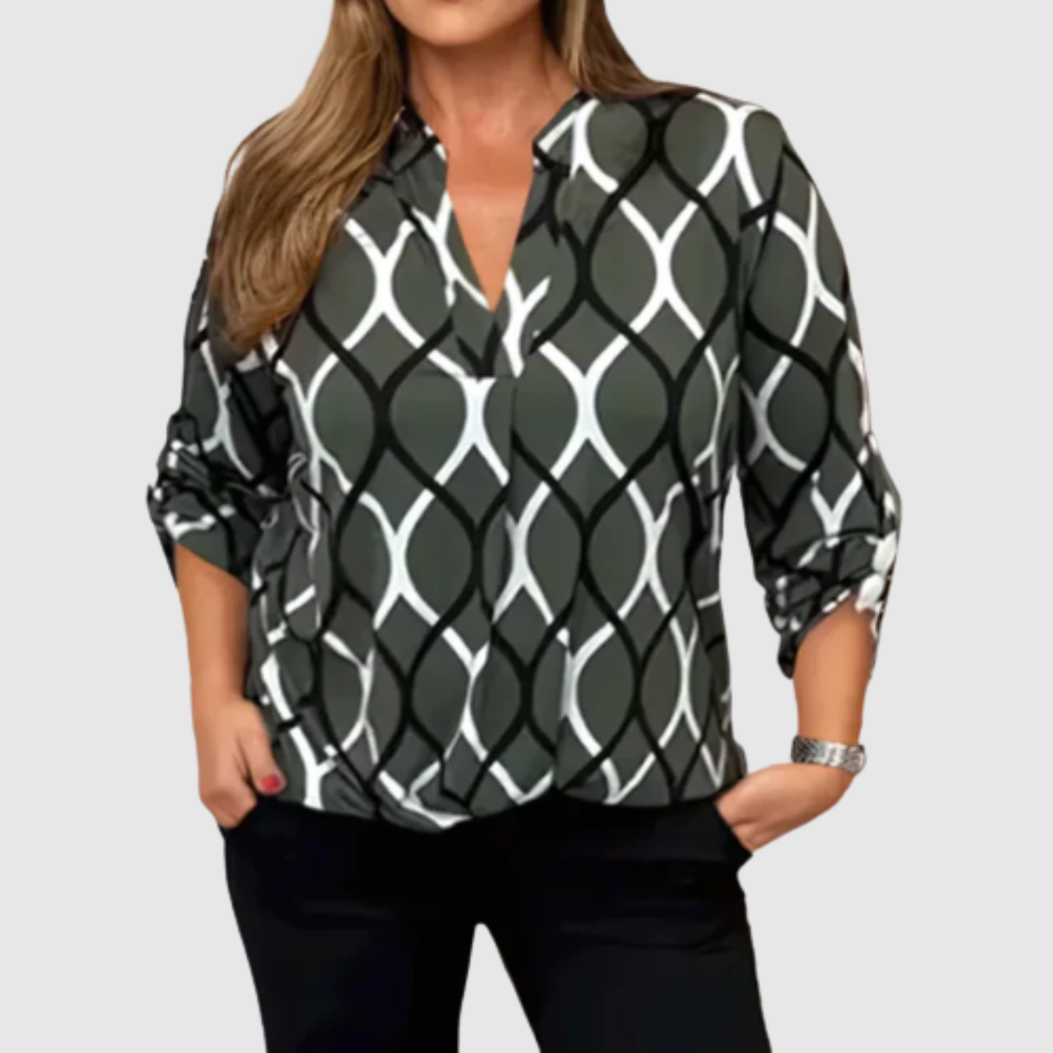 Nora – Elegancka bluzka z geometrycznym nadrukiem