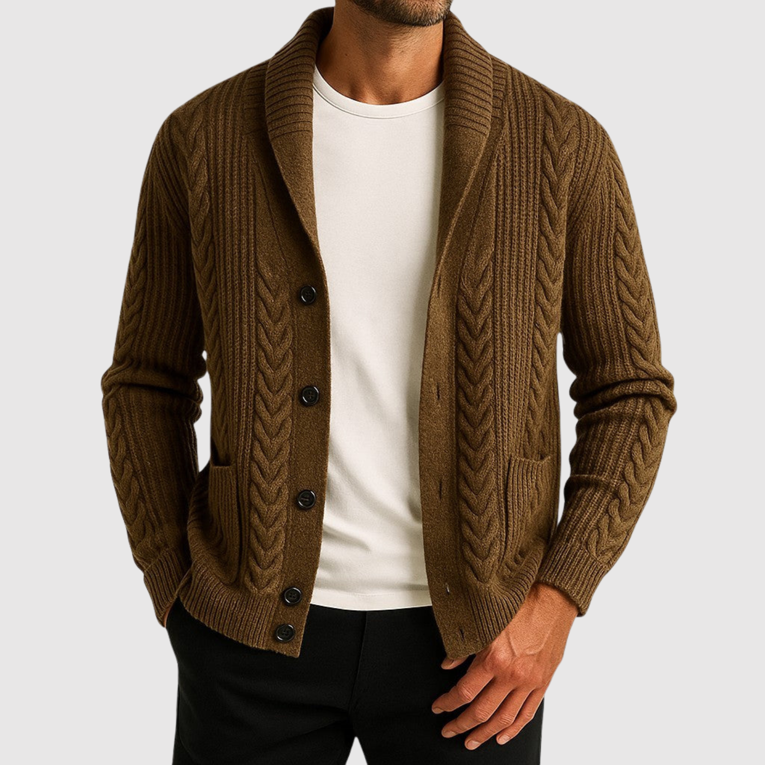 Šimon – Elegancki pleciony kardigan z kontrastowymi ramionami