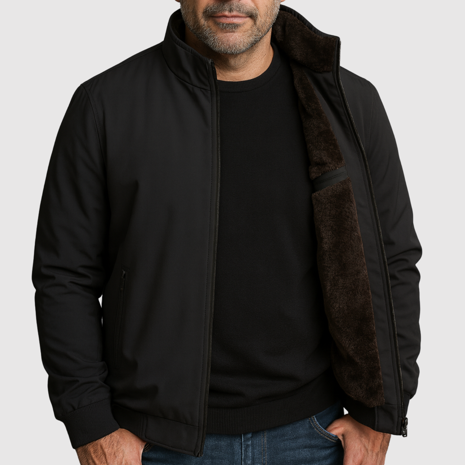 Ta kurtka typu "bomber" łączy w sobie czysty design i ciepło na zimę. Miękka wewnętrzna podszewka zapewnia wygodę i ochronę przed zimnem, podczas gdy zewnętrzna część nadaje nowoczesny i męski wygląd. Odpowiednia zarówno na co dzień, jak i na wieczorne wyjścia.