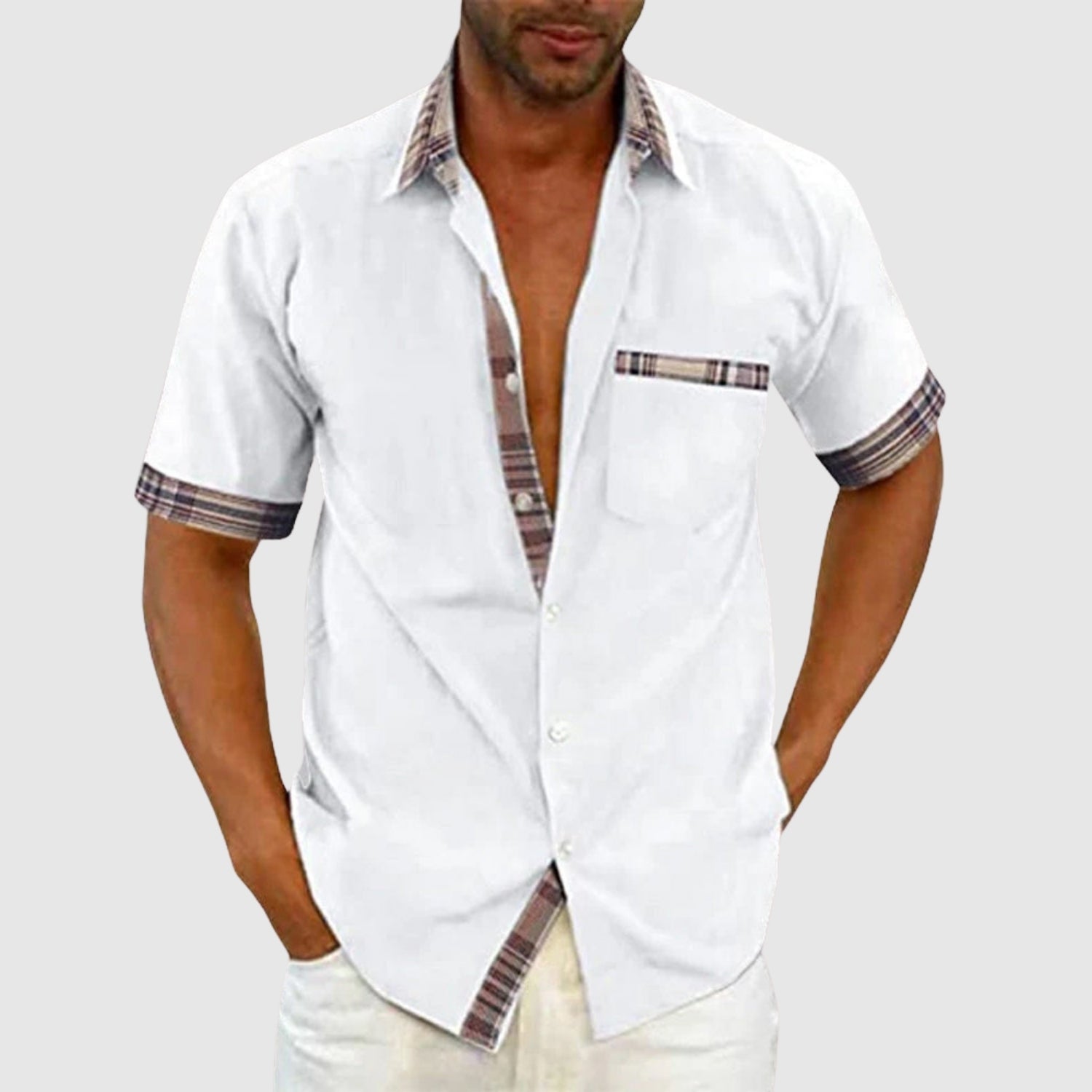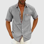 Nasza koszula casual z krótkim rękawem to idealny wybór na słoneczne dni, miejskie spacery lub wieczory w nieformalnym stylu. Z delikatnymi detalami projektowymi na kołnierzyku i kieszeni, bez wysiłku łączy elegancję z maksymalnym komfortem. Perfekcyjna dla tych, którzy cenią prostotę z wyraźnym akcentem.