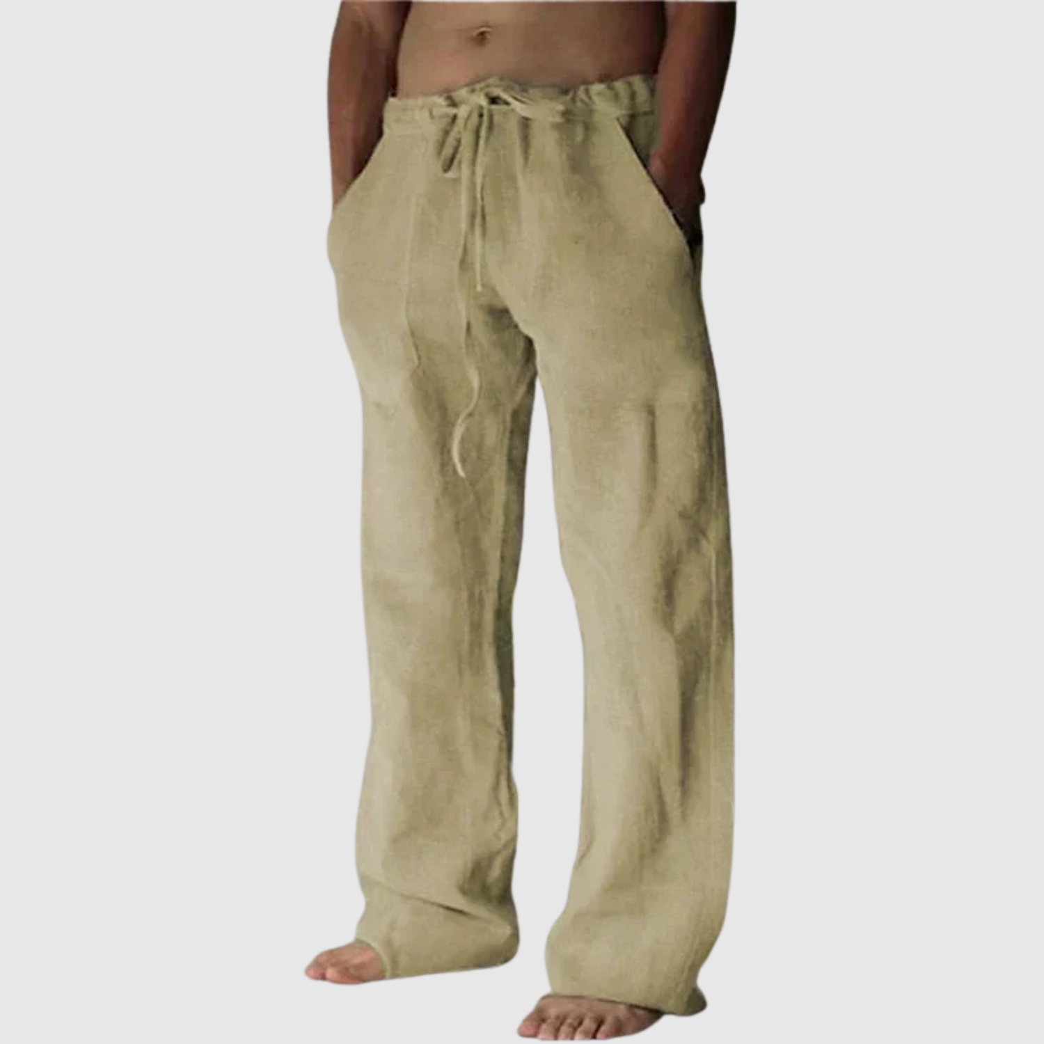 Te lniane spodnie są lekkie, wygodne i uniwersalne. Naturalny materiał zapewnia oddychalność, a luźny krój sprawia, że są idealne zarówno na co dzień, jak i na wakacyjną atmosferę.