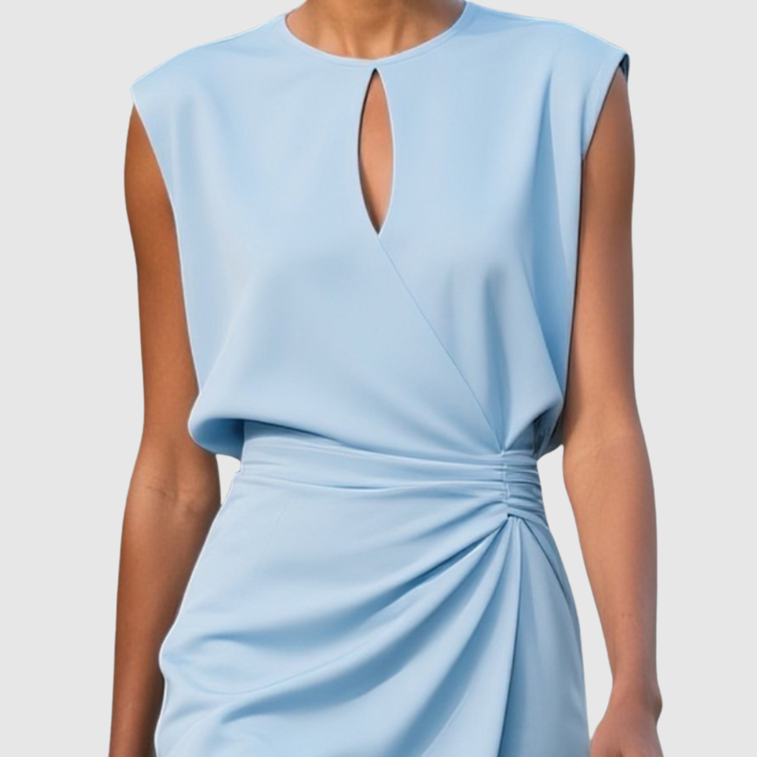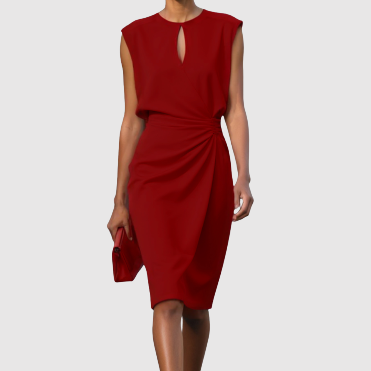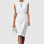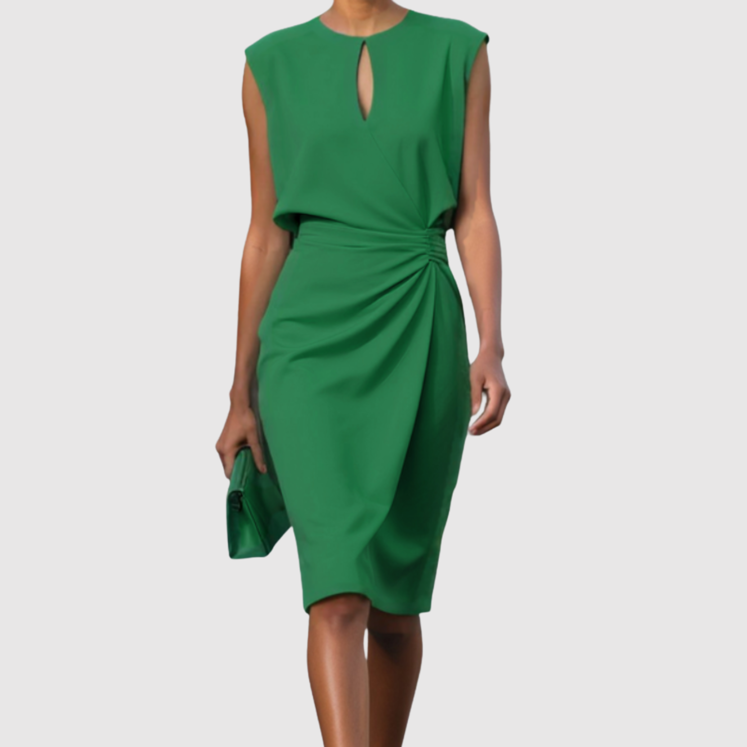Ta sukienka łączy czysty wygląd z kobiecą sylwetką, idealna do pracy, wieczornych wyjść lub na specjalne okazje. Delikatny akcent z przodu dodaje subtelnego detalu, podczas gdy wygodny krój zapewnia komfort przez cały dzień. Model, który wygląda nowocześnie i podkreśla pewność siebie.