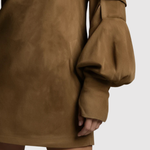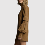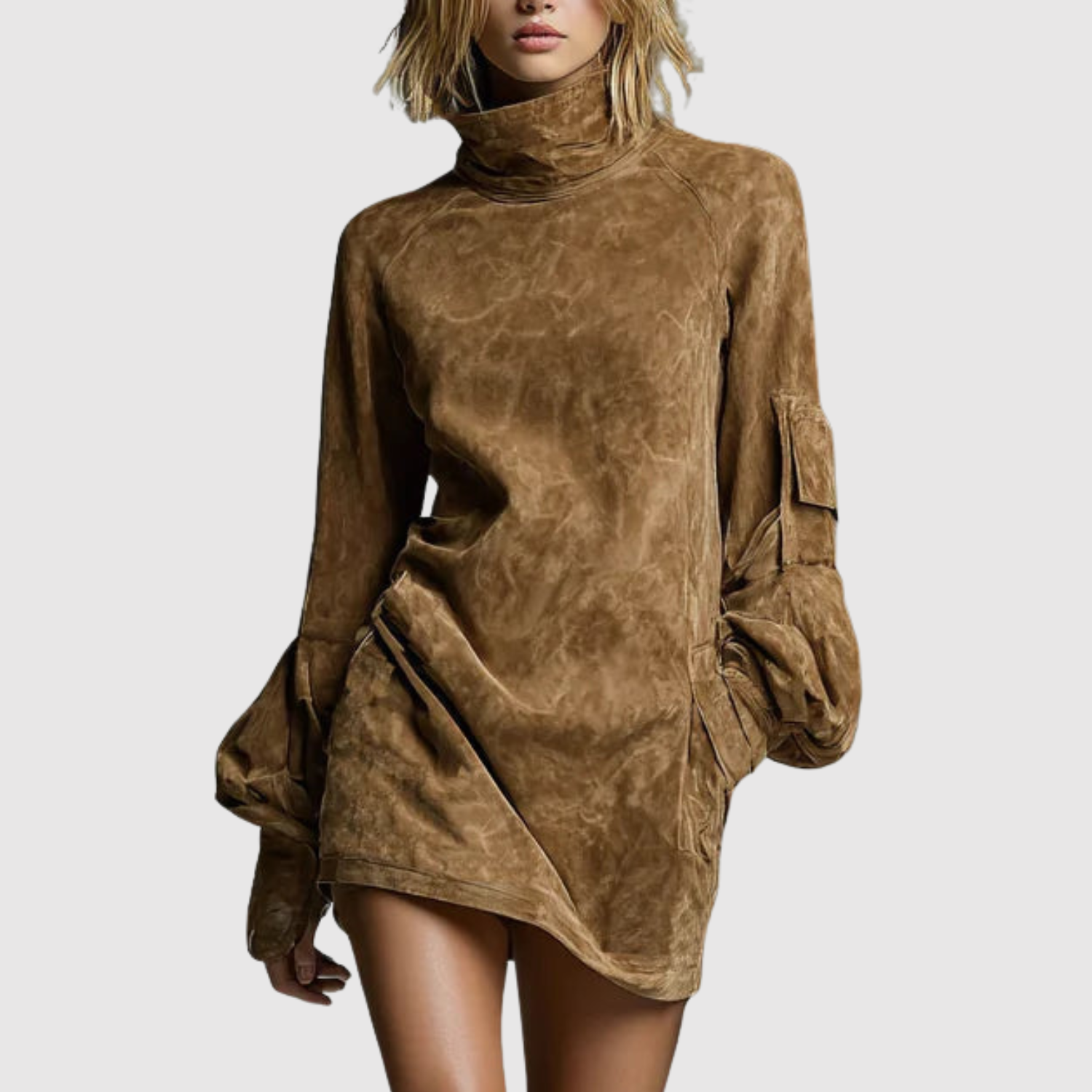 Ta krótka sukienka została zaprojektowana tak, aby łączyć elegancję z codziennym komfortem. Miękka tkanina otula sylwetkę, a swobodny fason zapewnia wygodę ruchu. Idealna na jesień i zimę — świetnie prezentuje się zarówno z kozakami, jak i z bardziej casualowymi dodatkami.