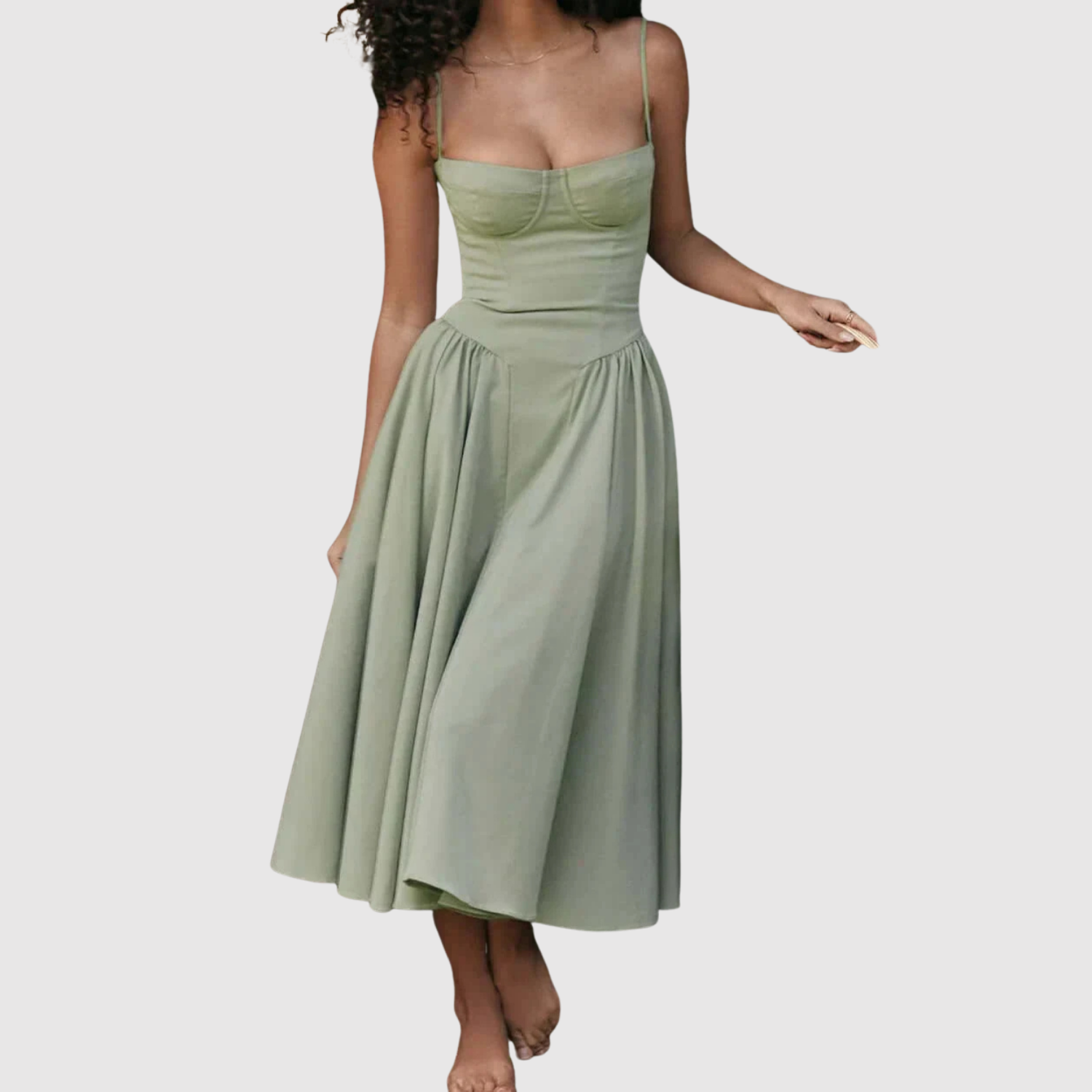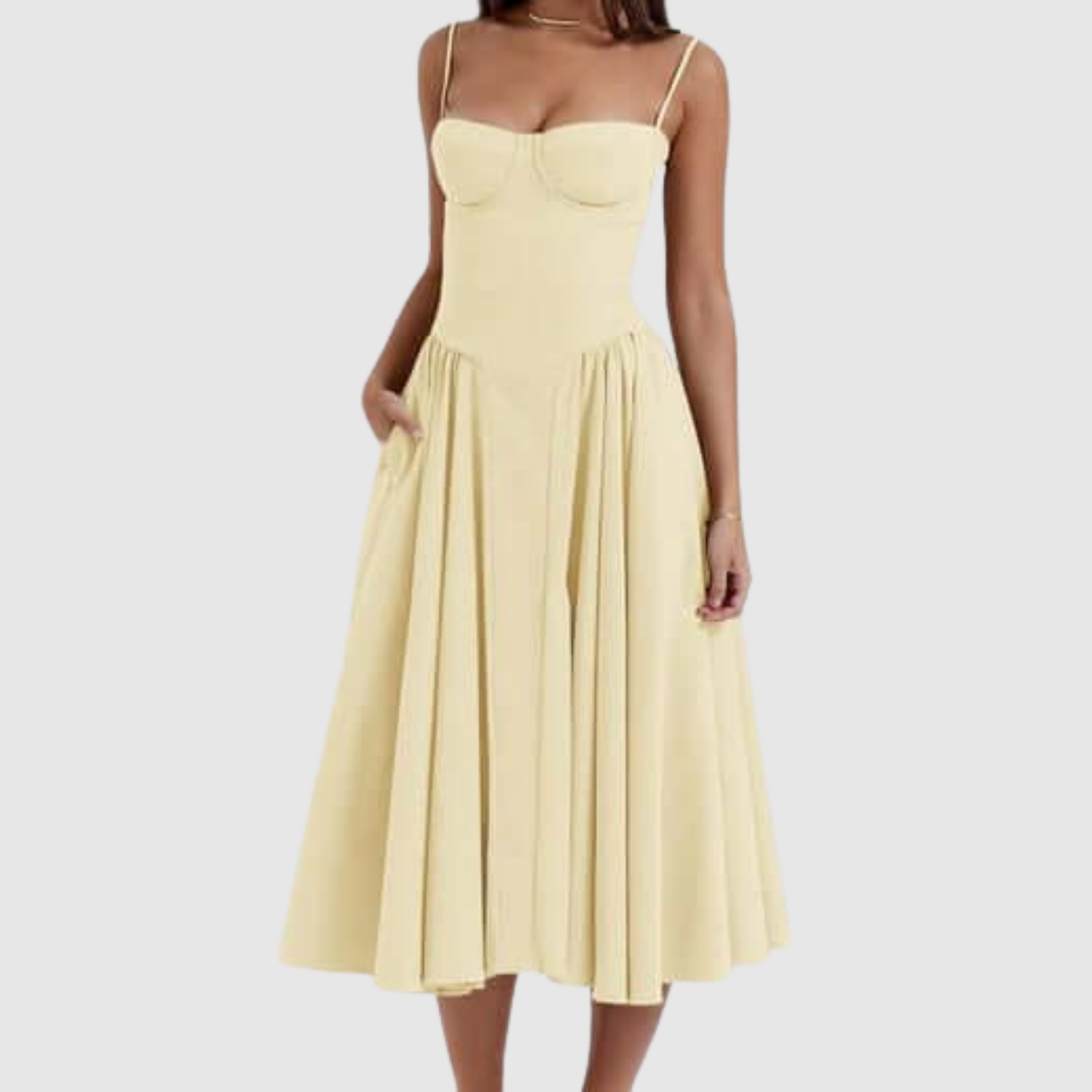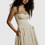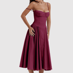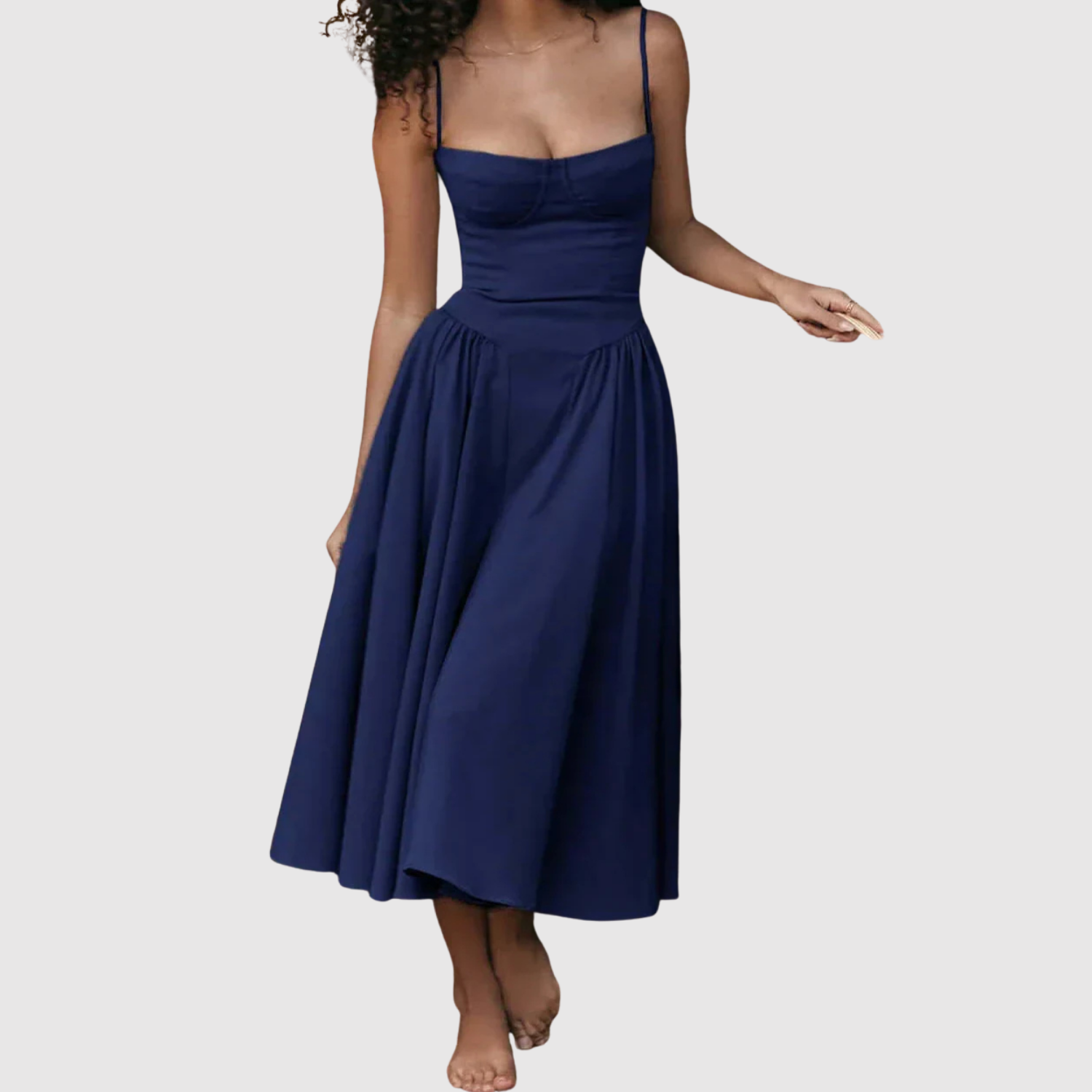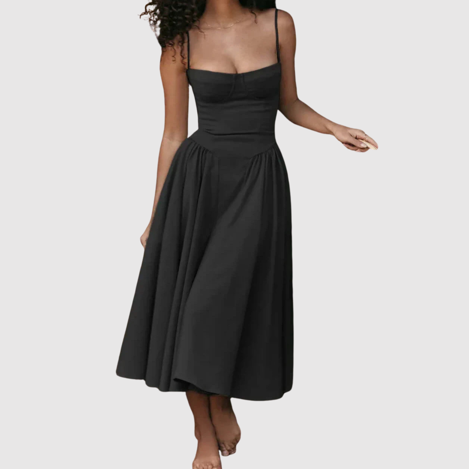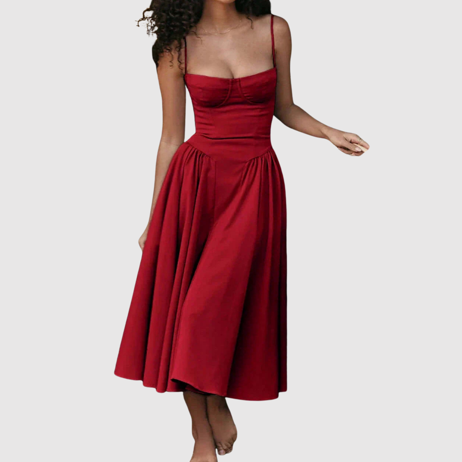 Ta problematyczna sukienka inspirowana jest klasycznym stylem retro i nadaje kobiecy oraz wyrafinowany wygląd. Szeroki kołnierz tworzy piękne ruchy, podczas gdy dopasowana górna część podkreśla talie. Idealna zarówno na letnie przyjęcia, jak i eleganckie kolacje.