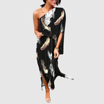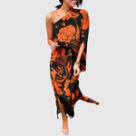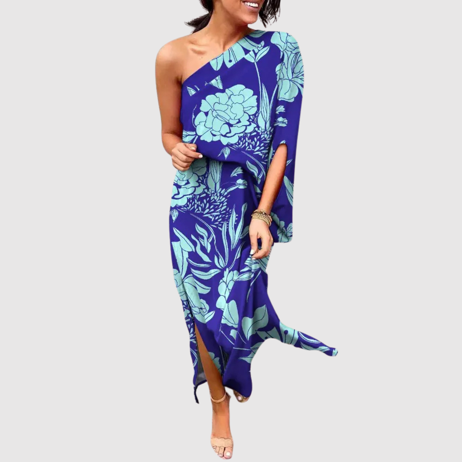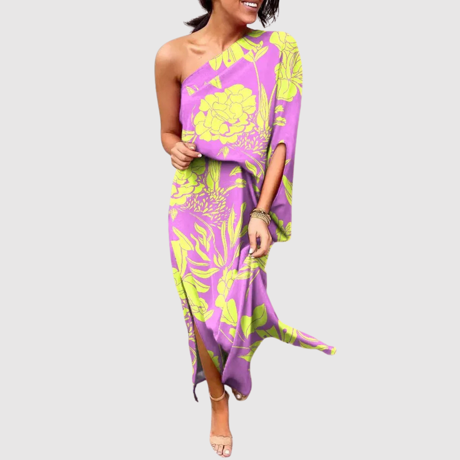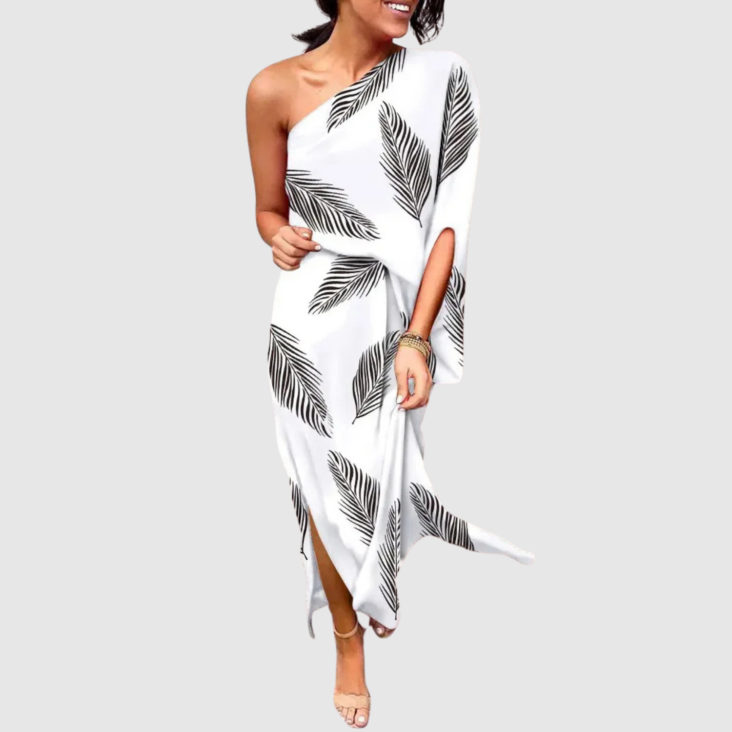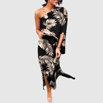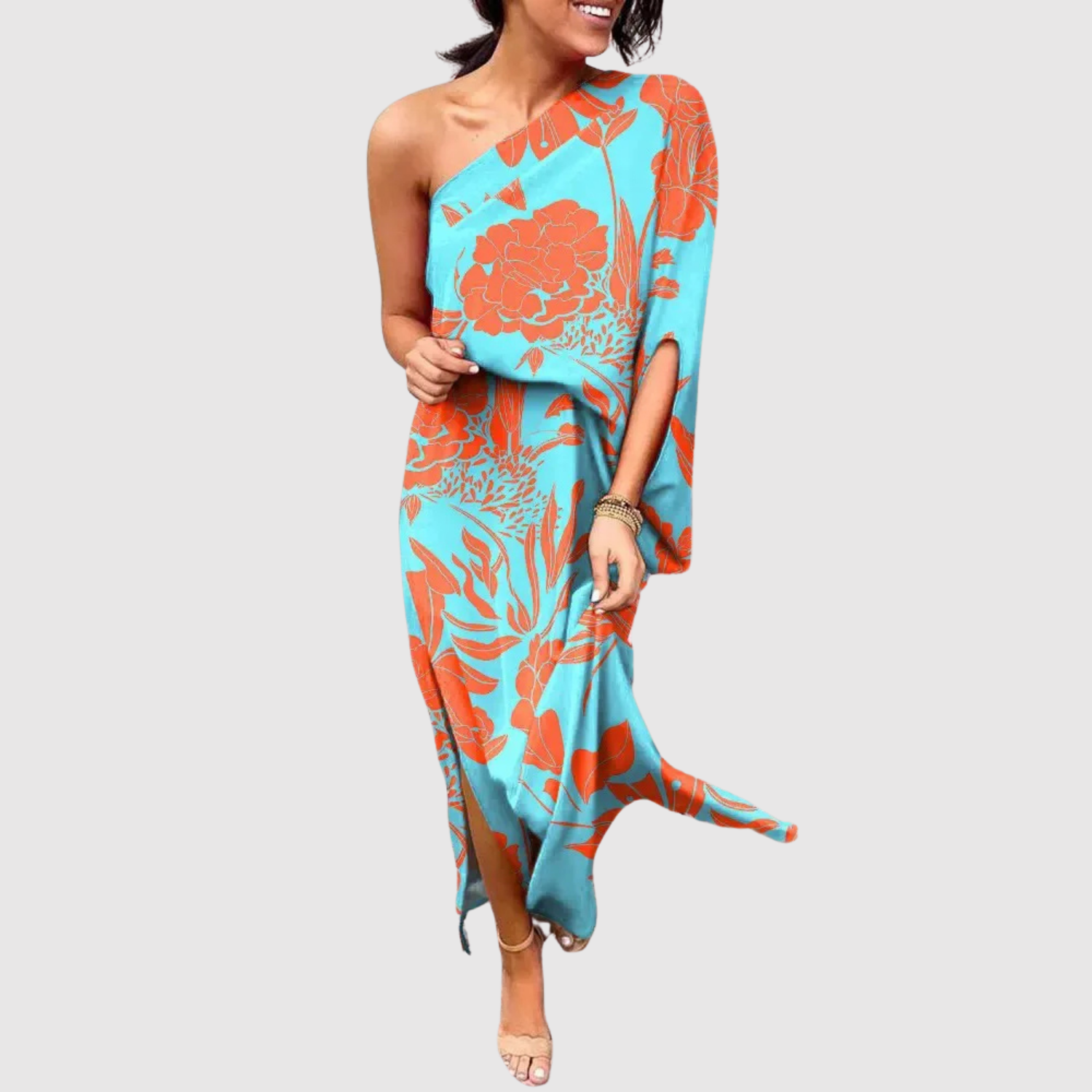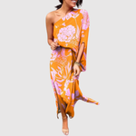 Ta asymetryczna sukienka łączy świeży krój z imponującym kwiatowym wzorem. Idealna na letnie imprezy, dni na plaży lub wieczory na świeżym powietrzu, gdy chcesz dodać odrobinę koloru i indywidualności.