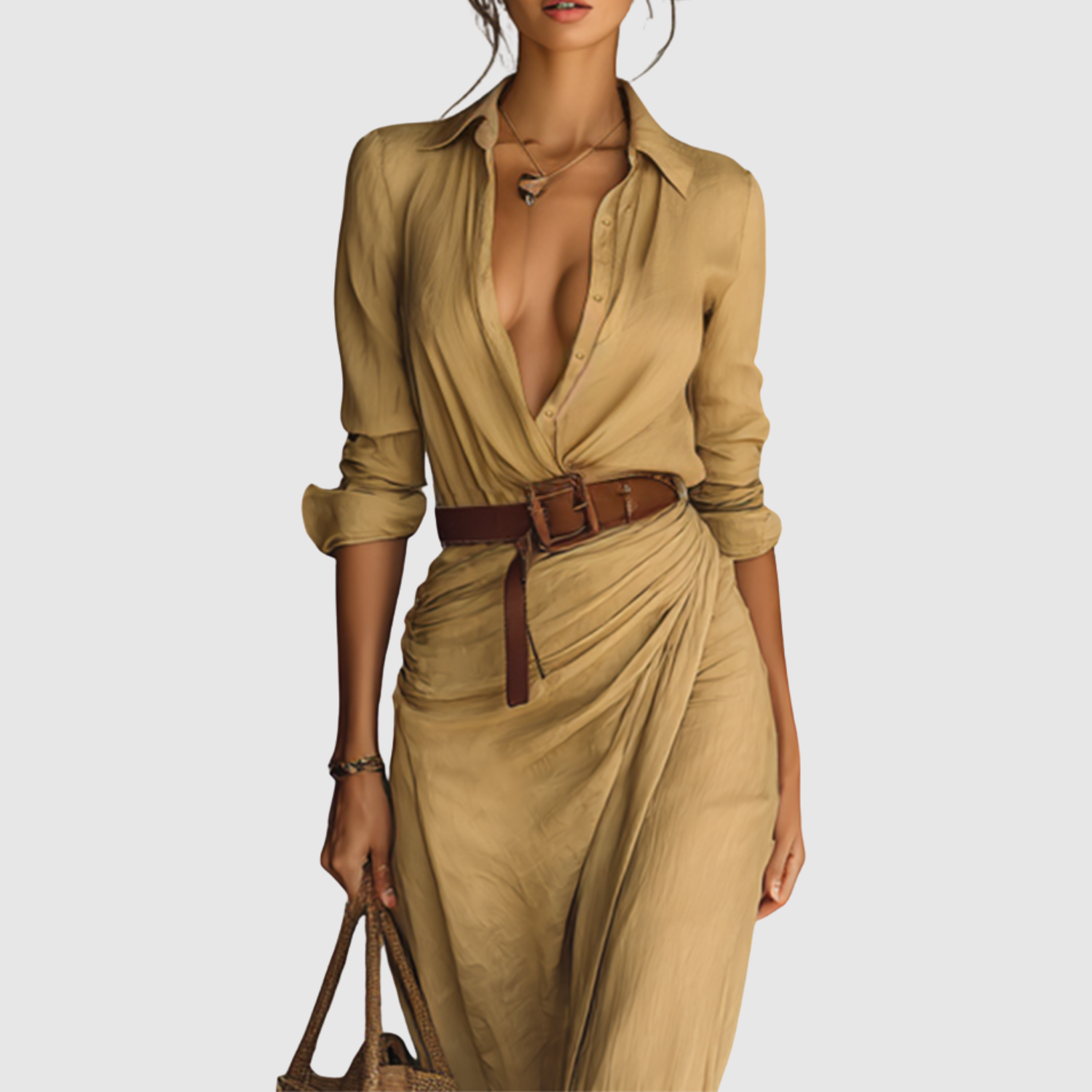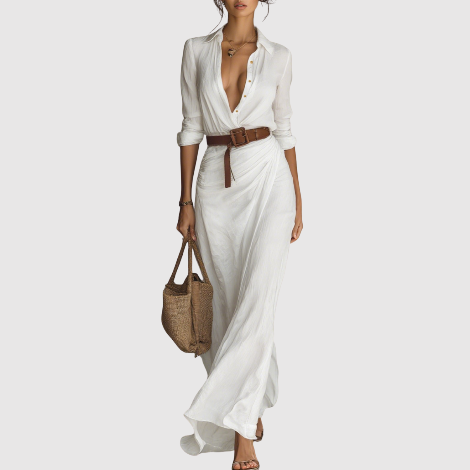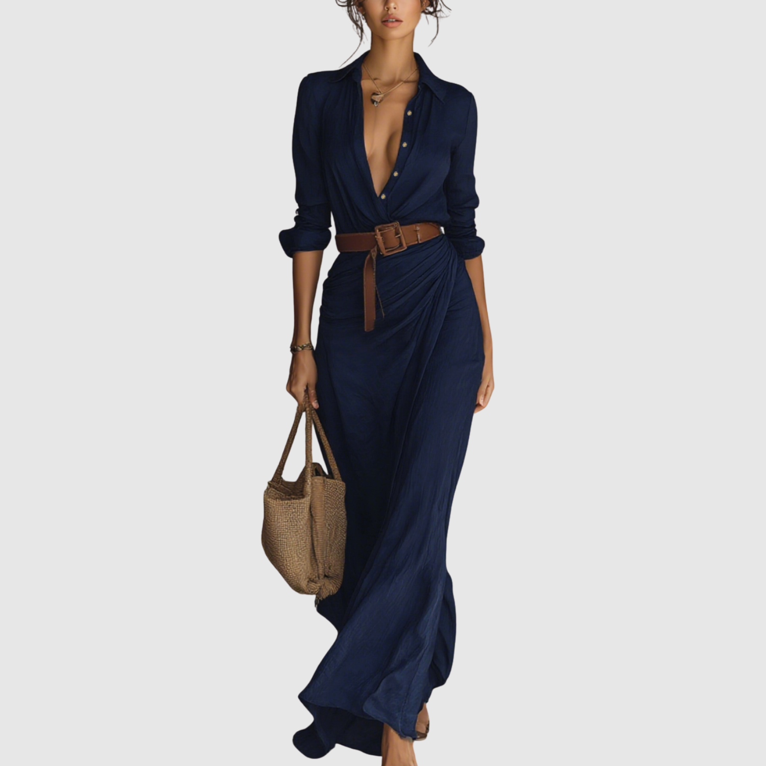 Eliška – Zwiewna długa sukienka z eleganckim dekoltem