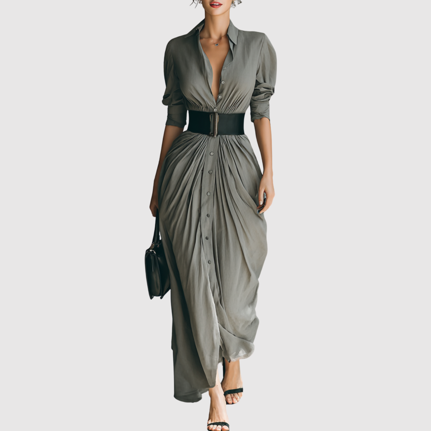 Eliška – Elegancka długa sukienka z drapowaniem
