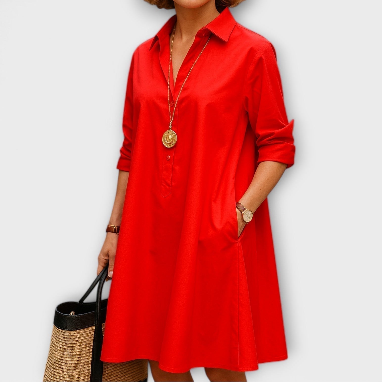 Eliška - Nowoczesna sukienka koszulowa z kołnierzykiem i rękawami 3/4