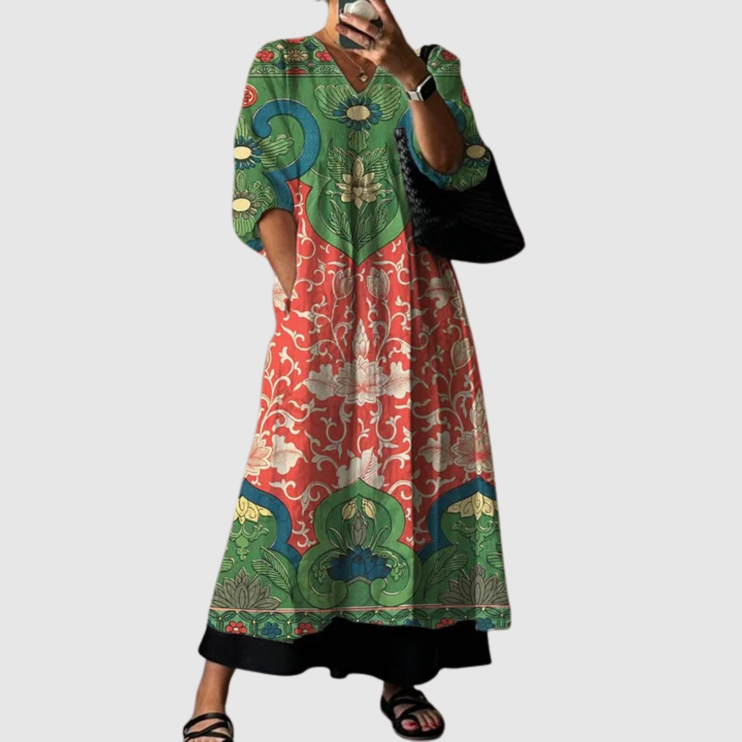 Eliška - Elegancka długa sukienka w kwiatowy wzór