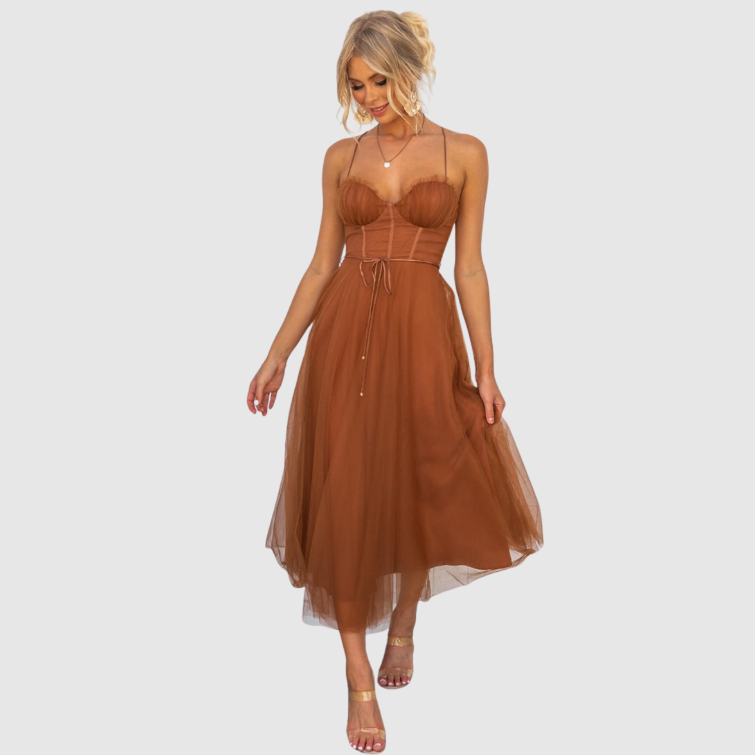 Eliška – Bezproblemowa midi sukienka z tiulu o objętości