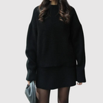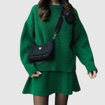 Ten damski komplet łączy stylową kurtkę z pasującą spódnicą, tworząc doskonały i elegancki wygląd. Idealny do biura, na kolacje lub specjalne okazje. Komfort i design spotykają się w ponadczasowym stroju, który podkreśla Twój kobiecy styl.