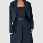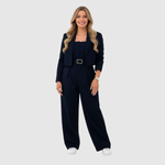 Kombinezon Anna to doskonały wybór zarówno do pracy, jak i na wieczorne wydarzenia. Łączy formowany bustier z krótkim żakietem, który elegancko i pewnie podkreśla sylwetkę. Materiał ma lekką elastyczność, co zapewnia komfort przez cały dzień, a detal z paskiem dodaje szczyptę wyrafinowanego stylu.